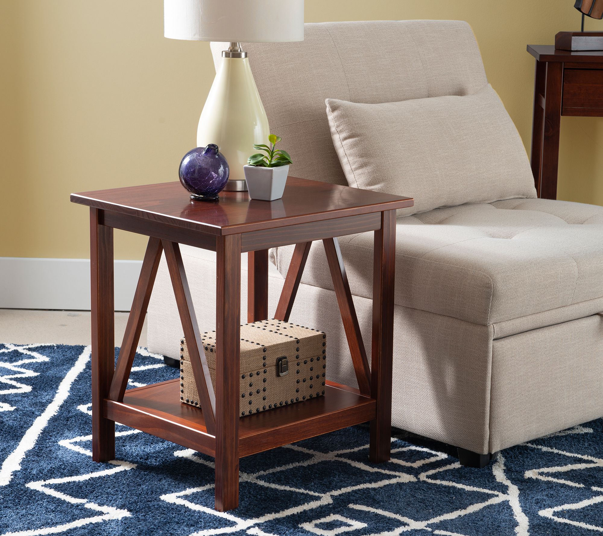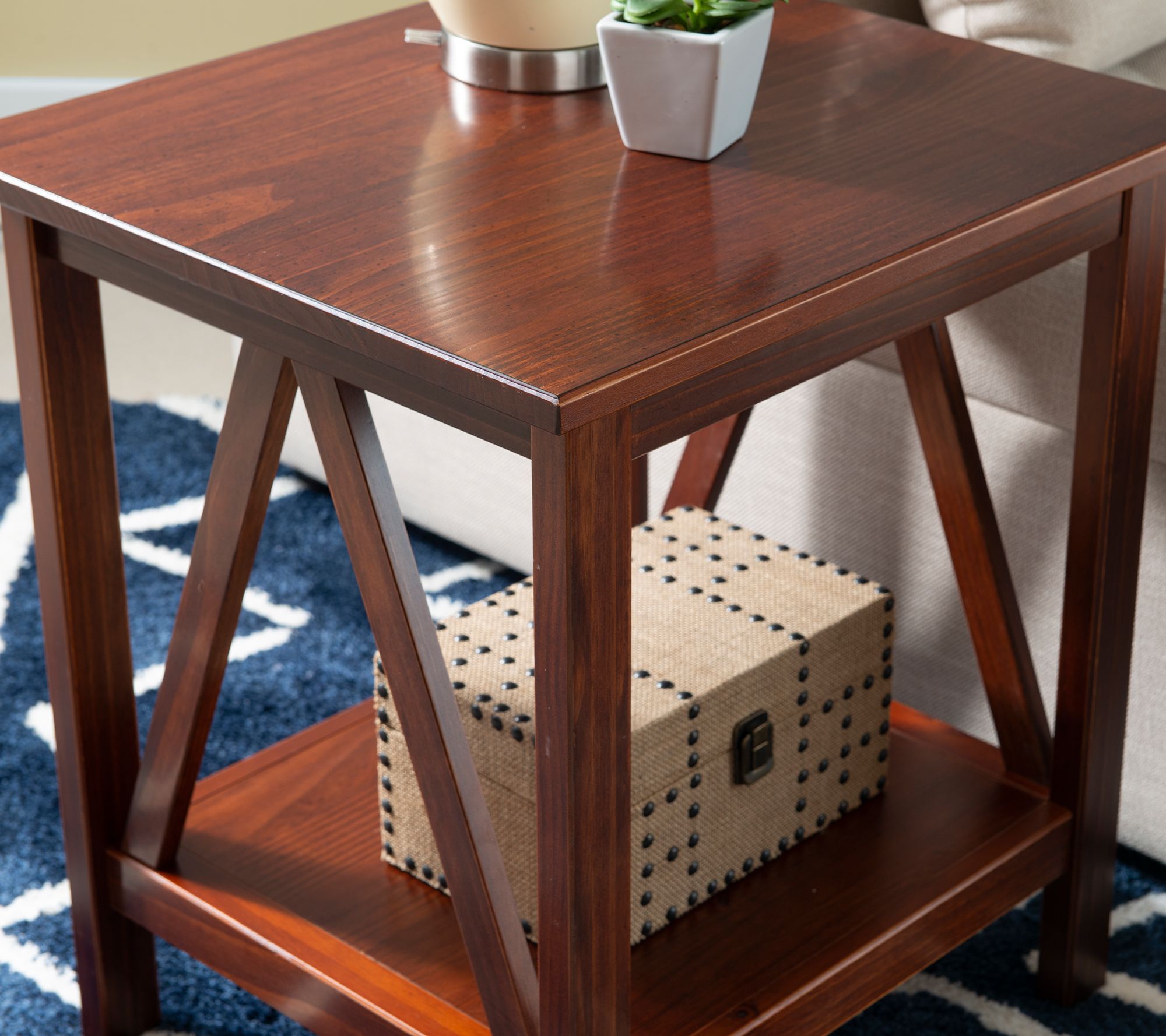Simple yet eye-catching, this Hollis Antique Tobacco end table updates the look of your living space. A gracious tabletop and spacious bottom shelf give you lots of storage and display space, and the neutral, classic finish complements your home decor beautifully. From Linon Home.