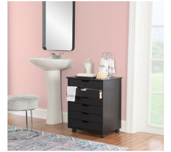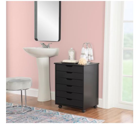 Linon Home Karla Wide 6-Drawer Rolling Cart