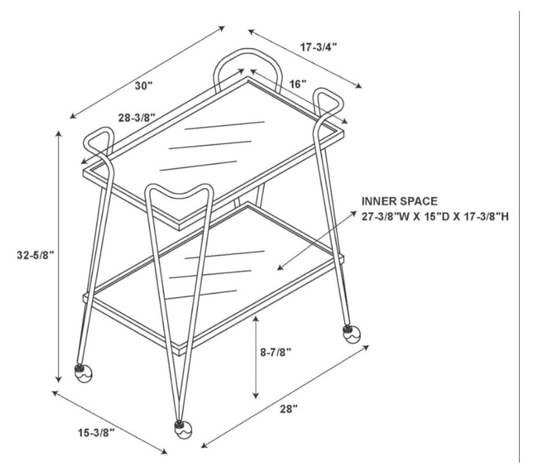 • Includes cart with shelves, wheels, hardware, and instructions