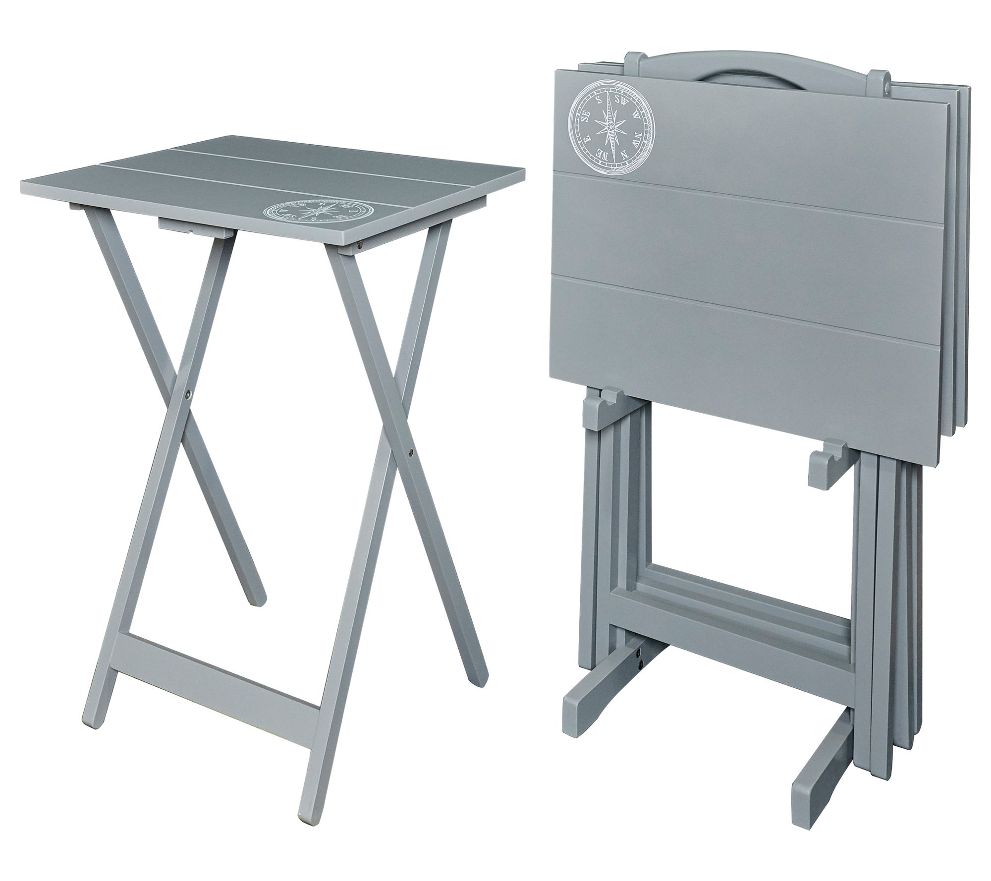 Linon Home Set of 4 Dune Compass Tray Table SetWith Rack
