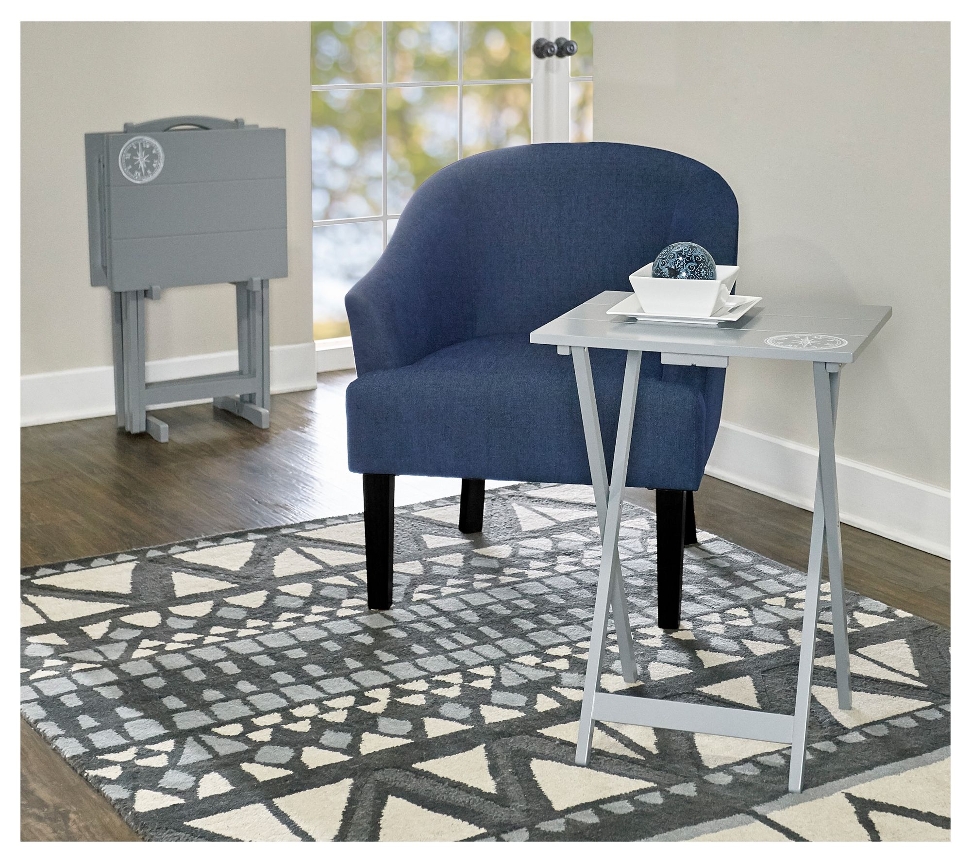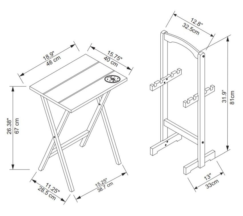 • Includes four tray tables, one storage stand, and hardware for assembly