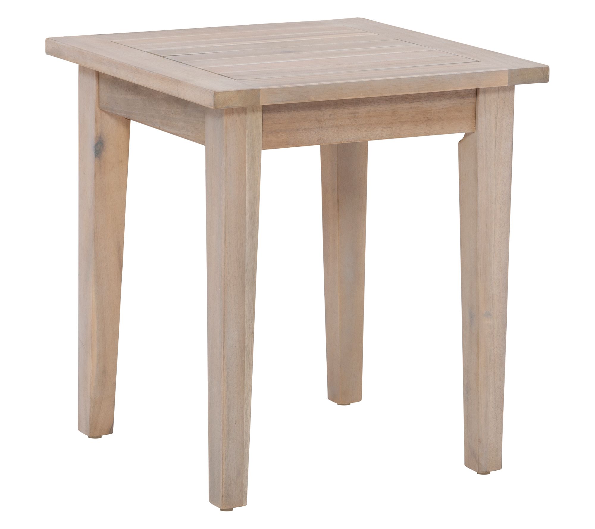 Bring style and function to your outdoor space with this acacia wood side table. The slatted top and tapered legs give it a timeless look while also offering durability. Place it between chairs or beside a couch for a handy surface on your porch, patio, or roof deck. From Linon Home.
