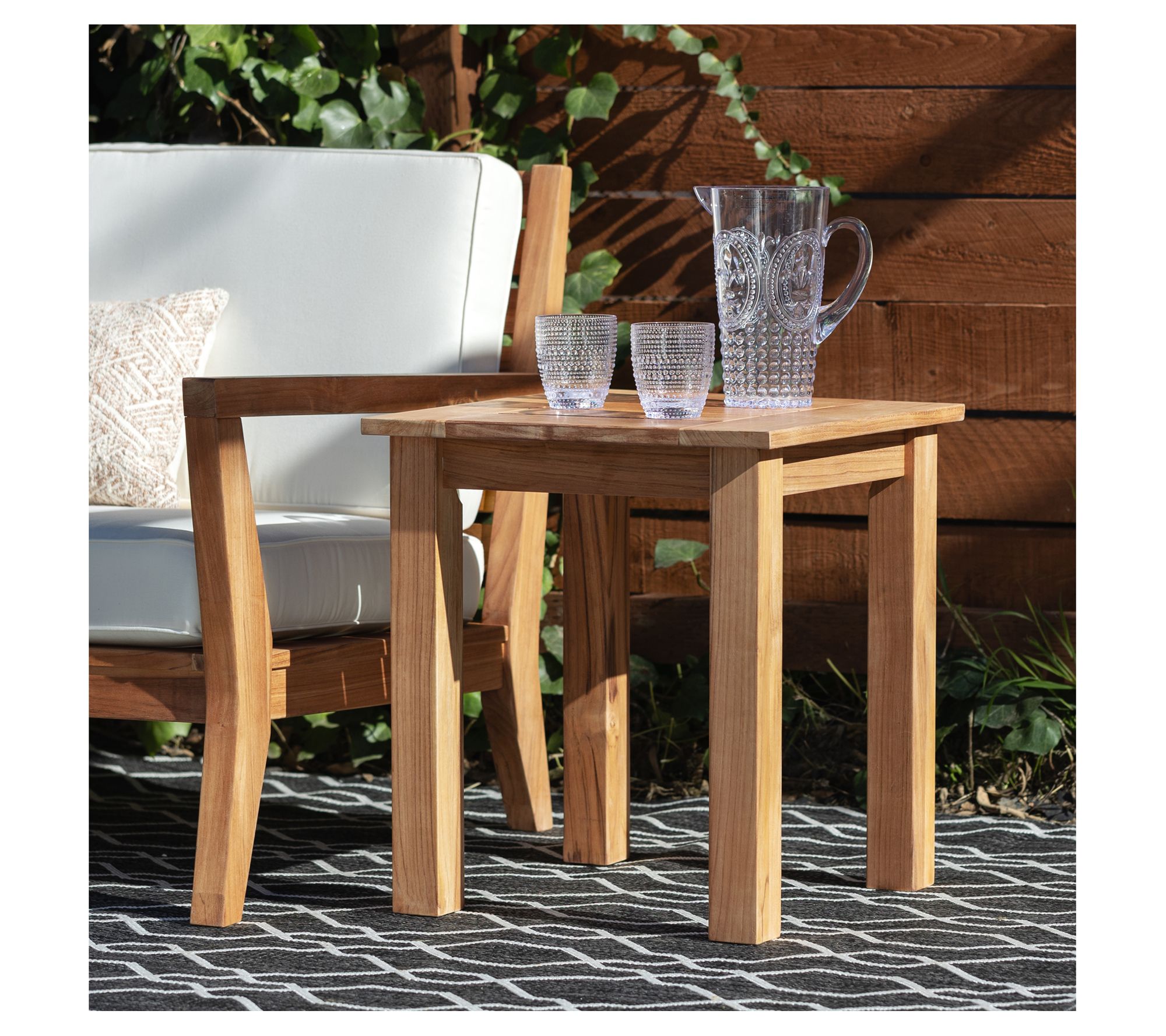 Elevate your outdoor lounging space with the Linon Home teak Cannon side table. Its compact design is perfect for small patios or spacious porches, making it a versatile addition to your decor. The sturdy, solid teak frame ensures durability, while the natural-toned oil finish highlights the unique wood grain. Ideal for holding drinks, snacks, or a decorative item, this table seamlessly blends style with functionality. From Linon Home.