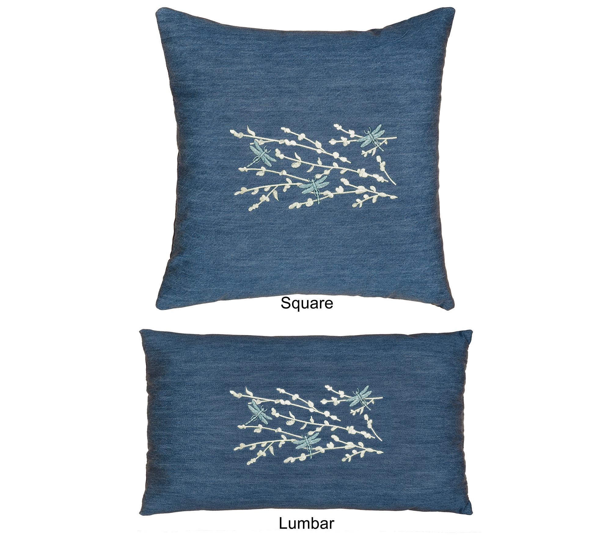Add instant enchantment to any seating area with this denim pillow cover embroidered with a dragonfly and twig design. From Linum Home Textiles.