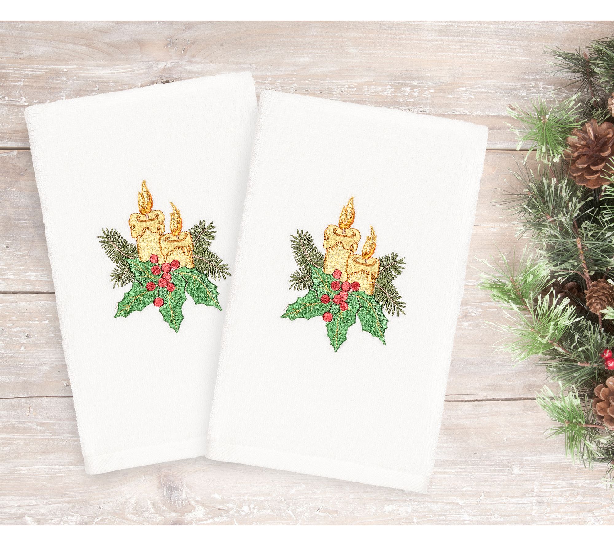 Linum Home Textiles Christmas Candles 2-Piece Hand Towels