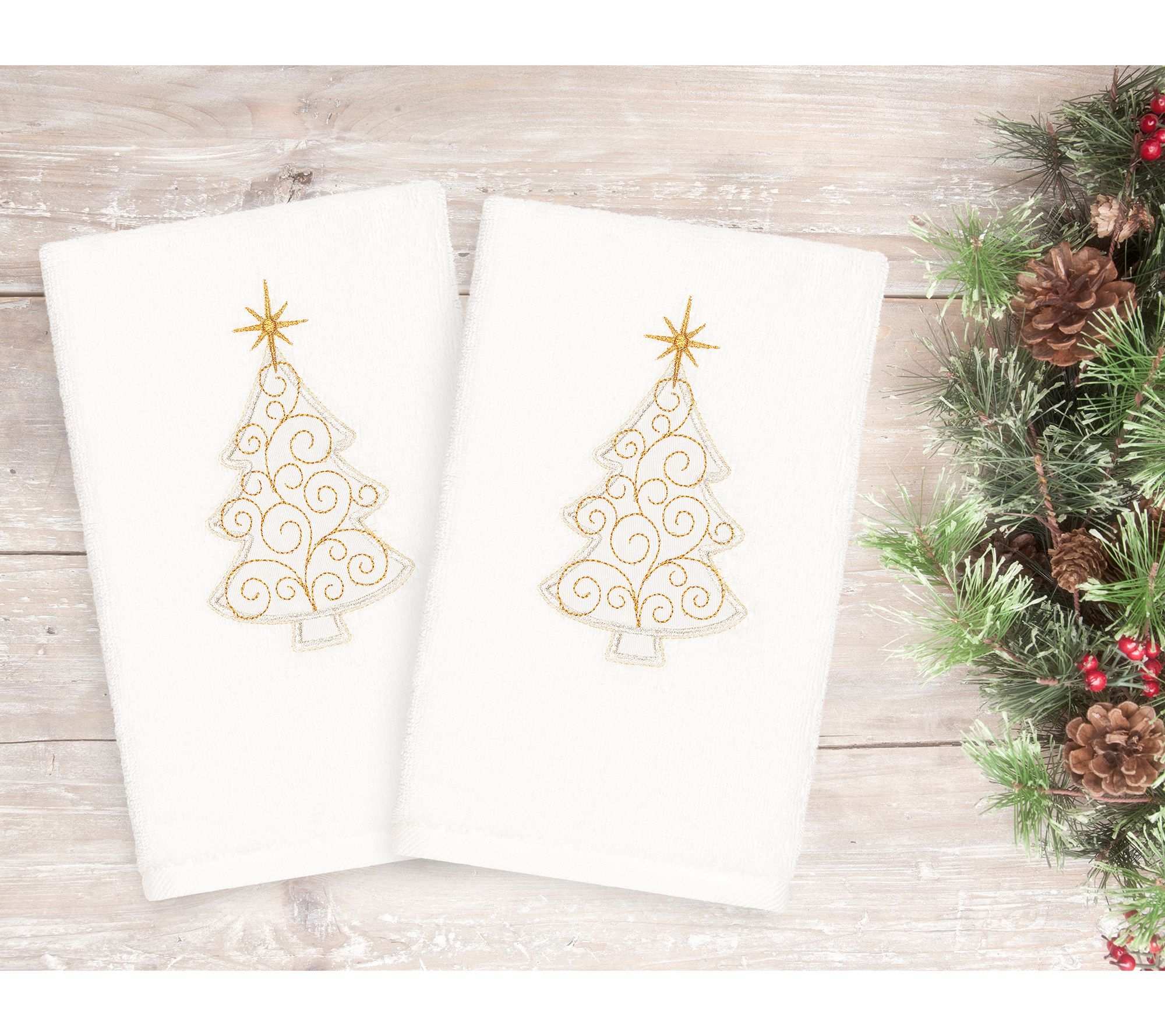 Linum Home Textiles Christmas Scroll Tree 2-Piece Hand Towels