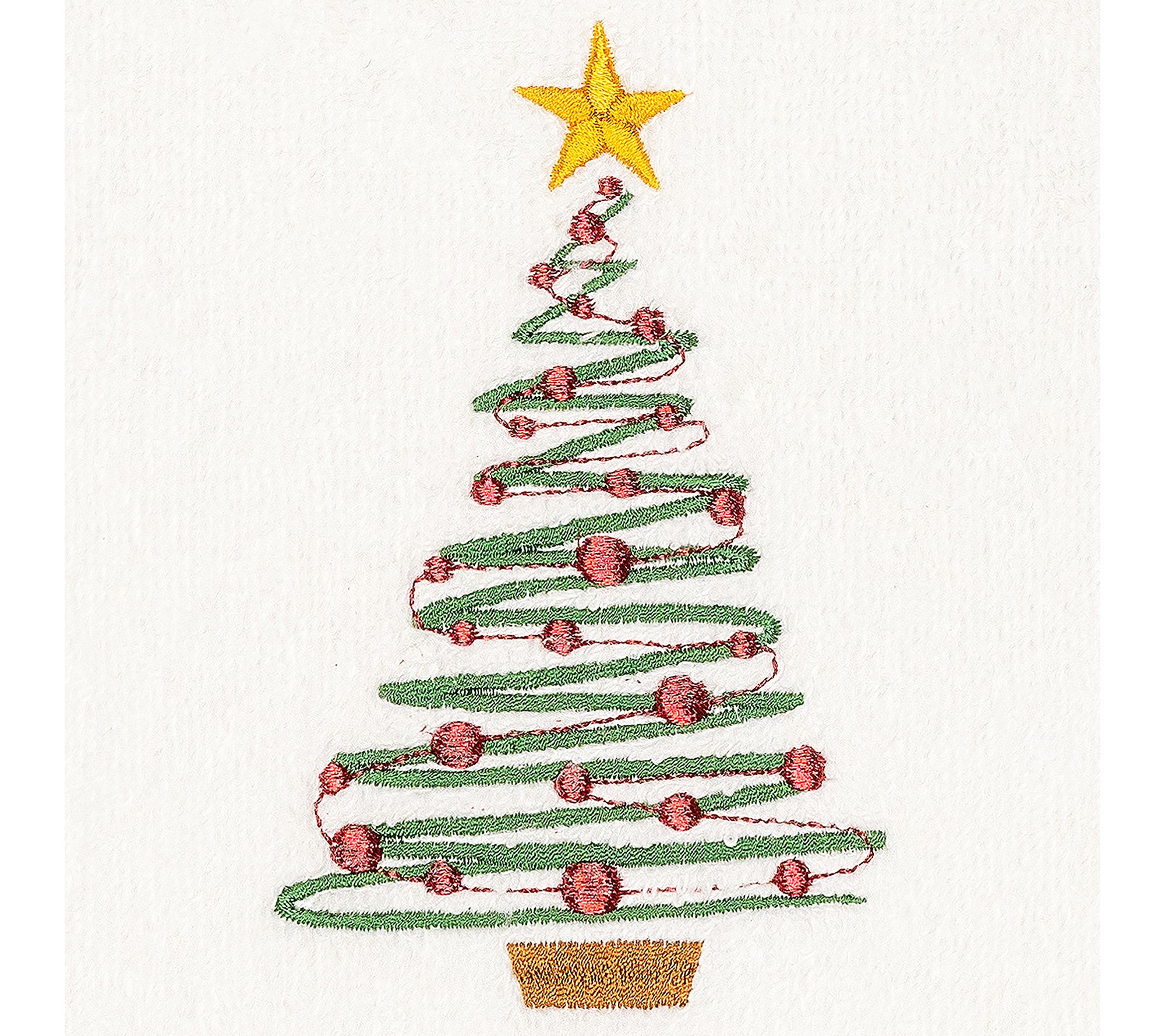 • Embroidered Christmas tree with sparkling metallic balls and garland