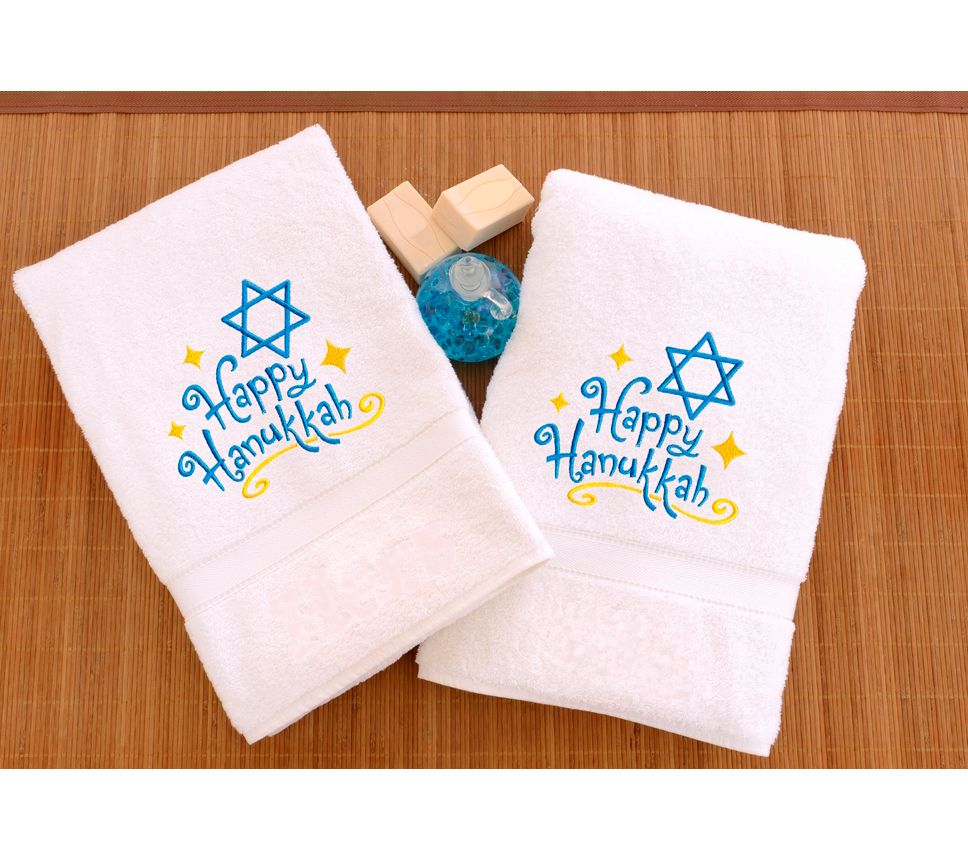 Linum Home Textiles Embroidered Hand Towels wit h Happy Hanukk