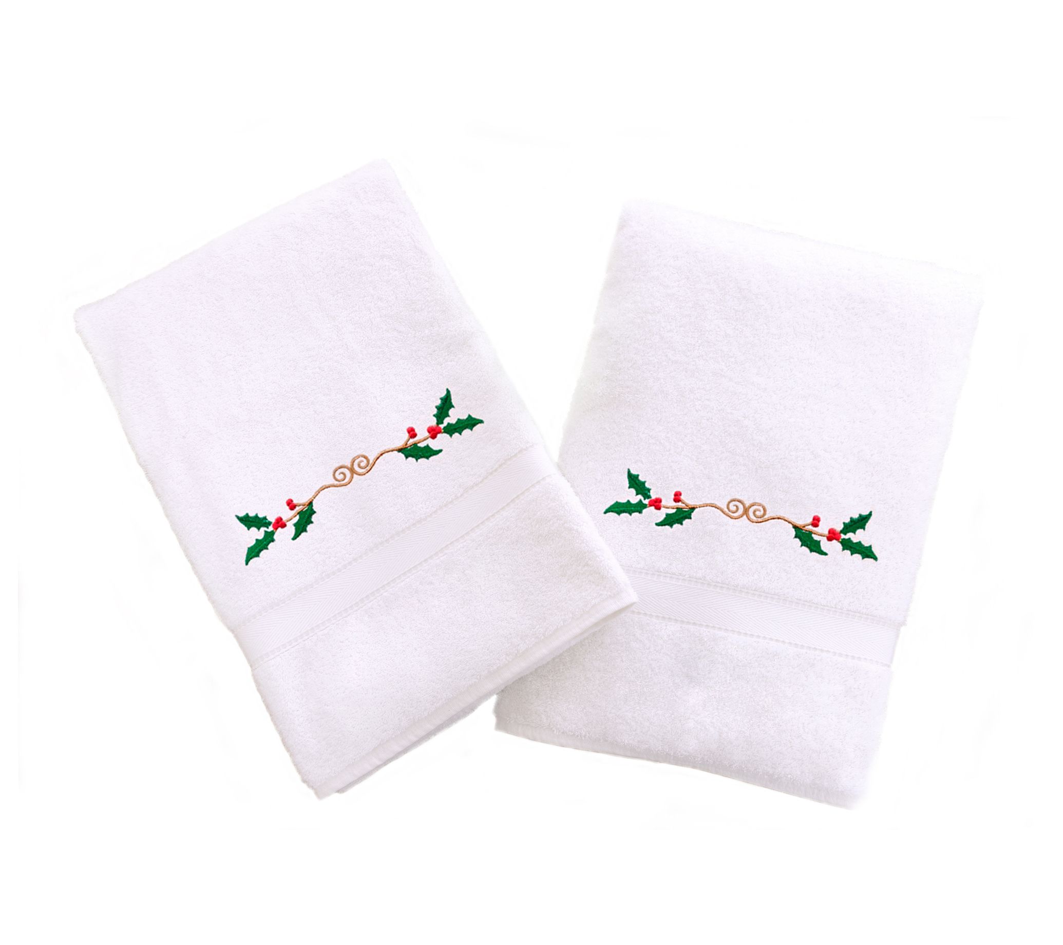 Linum Home Textiles Embroidered Hand Towels wit h Holly Border