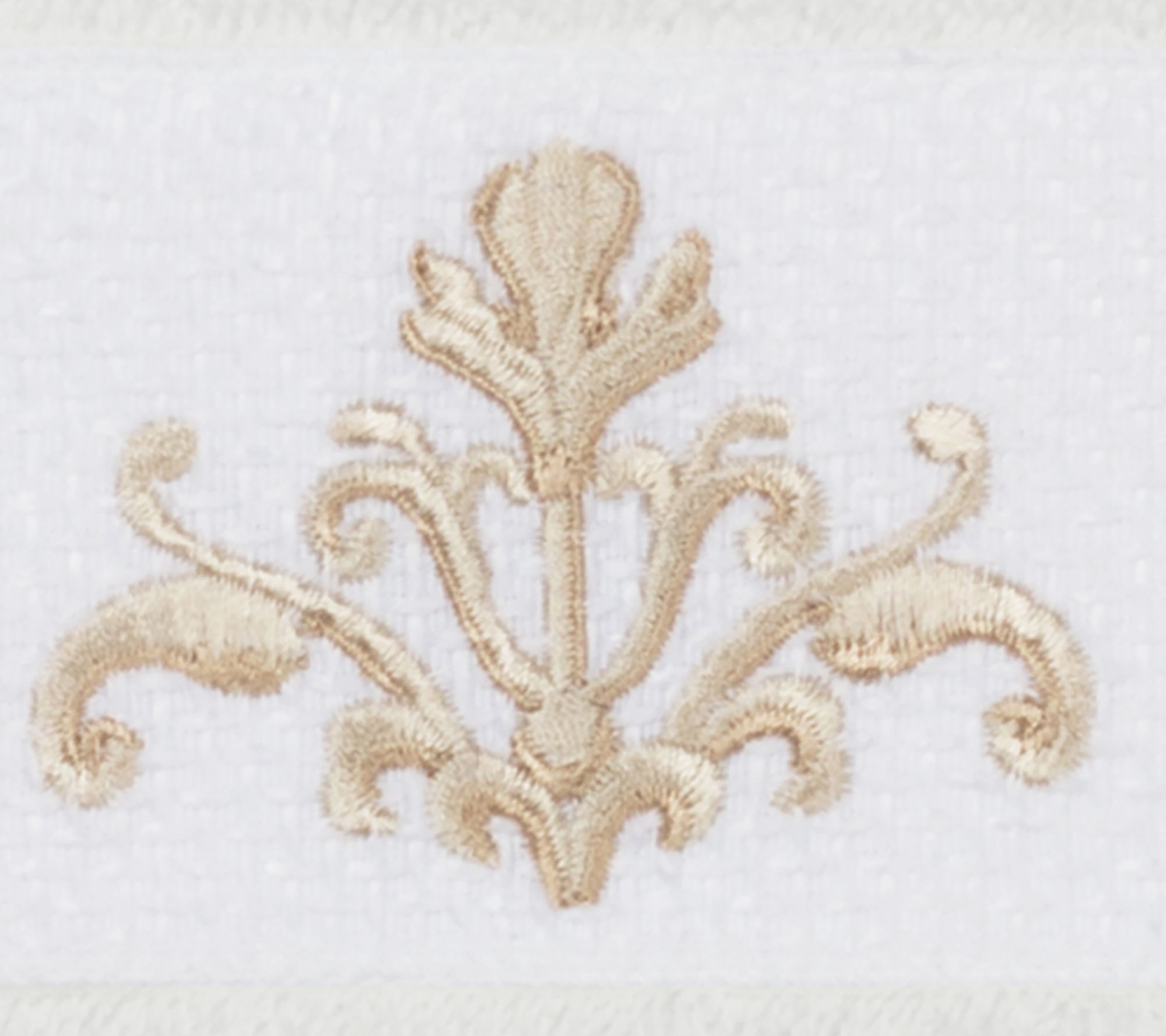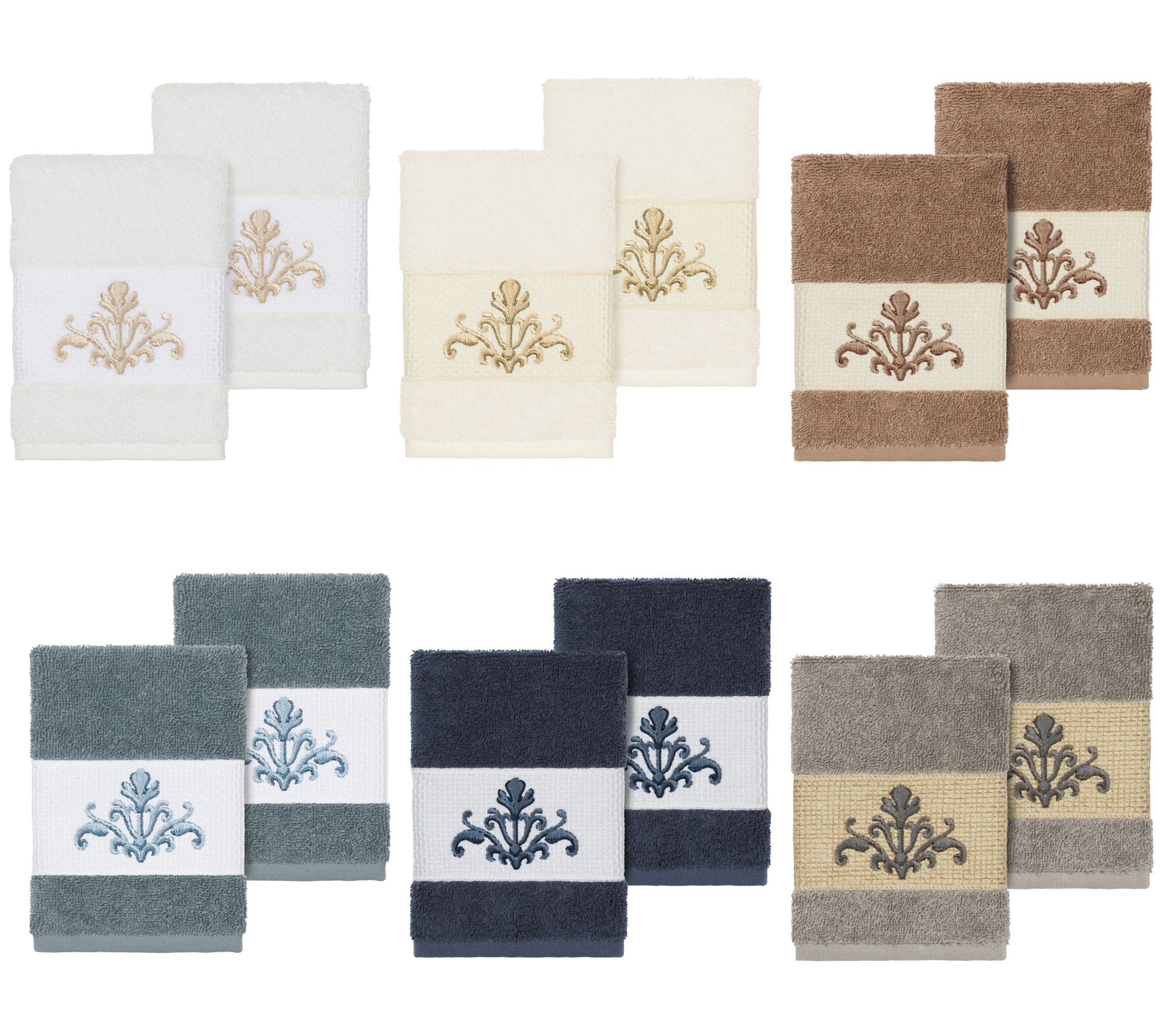 Upgrade your bath decor with these washcloths featuring an elegant, scrolling crest motif embellishment on a textured woven border. Soft and luxurious, these washcloths are made of premium cotton and offer lasting absorbency and superior durability. From Linum Home Textiles.