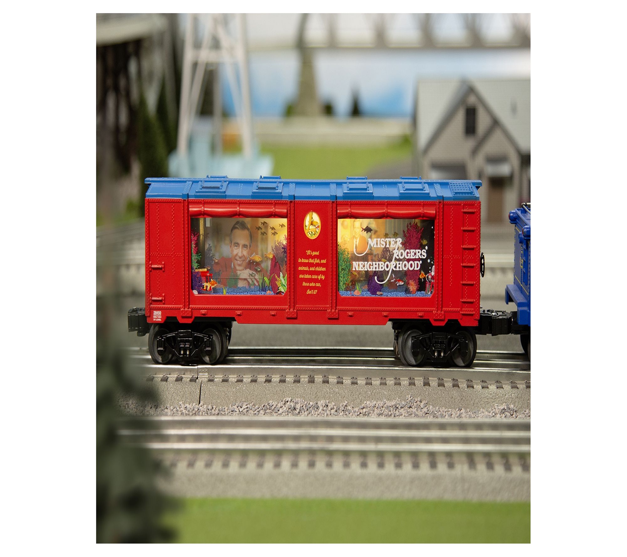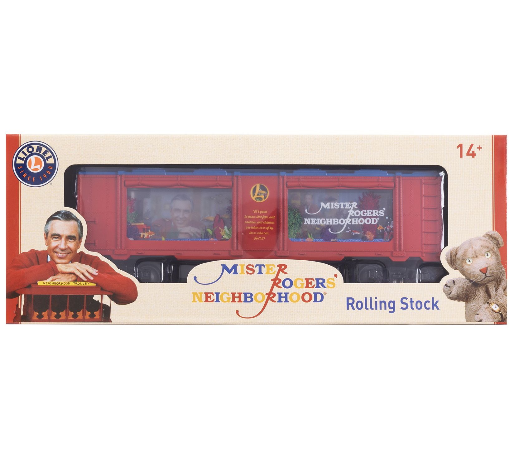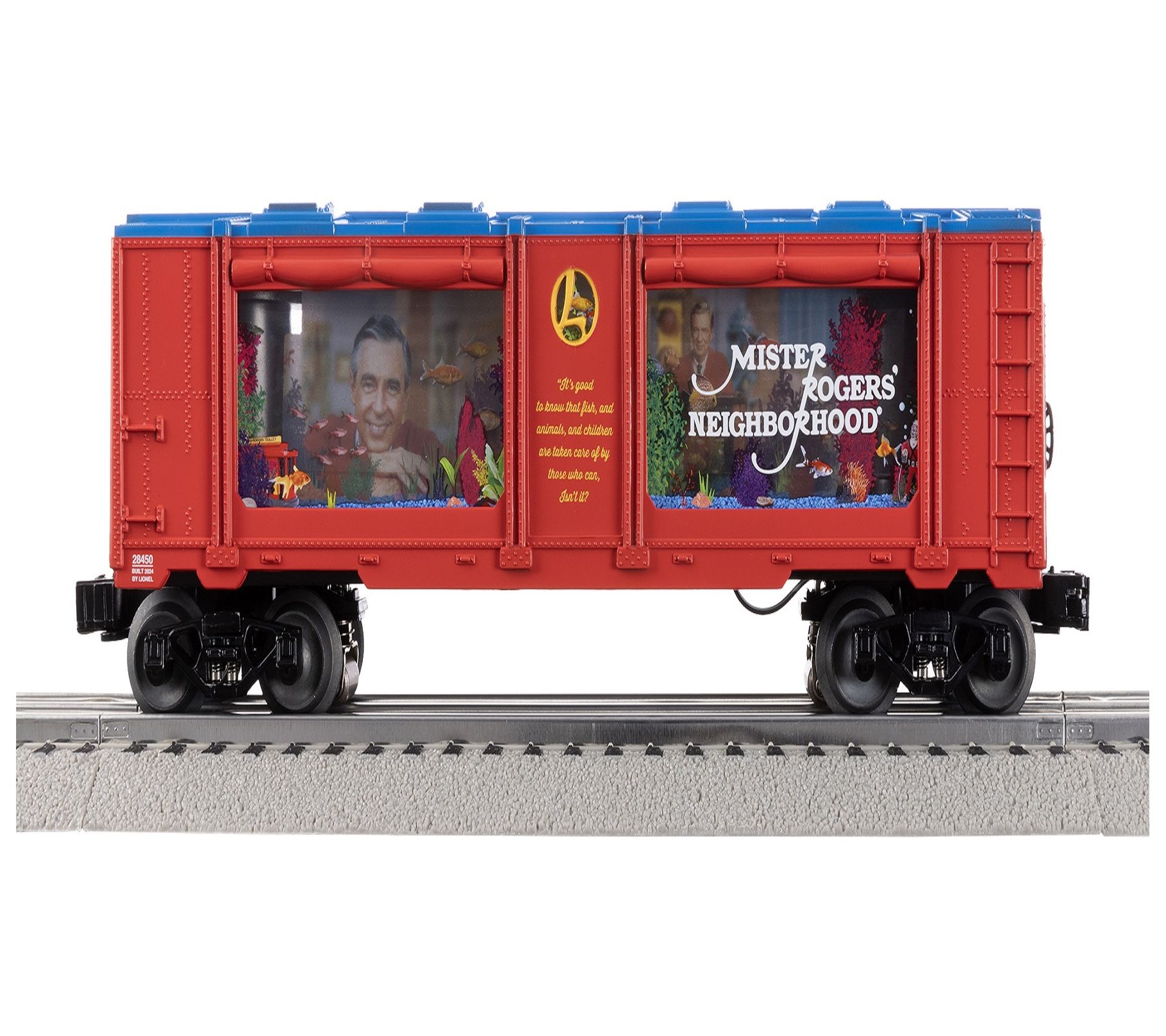 Add some nostalgic charm to your train collection with the Lionel Mister Rogers aquarium car. Featuring moving fish and interior illumination, it's perfect for any fan of the beloved show. From Lionel.