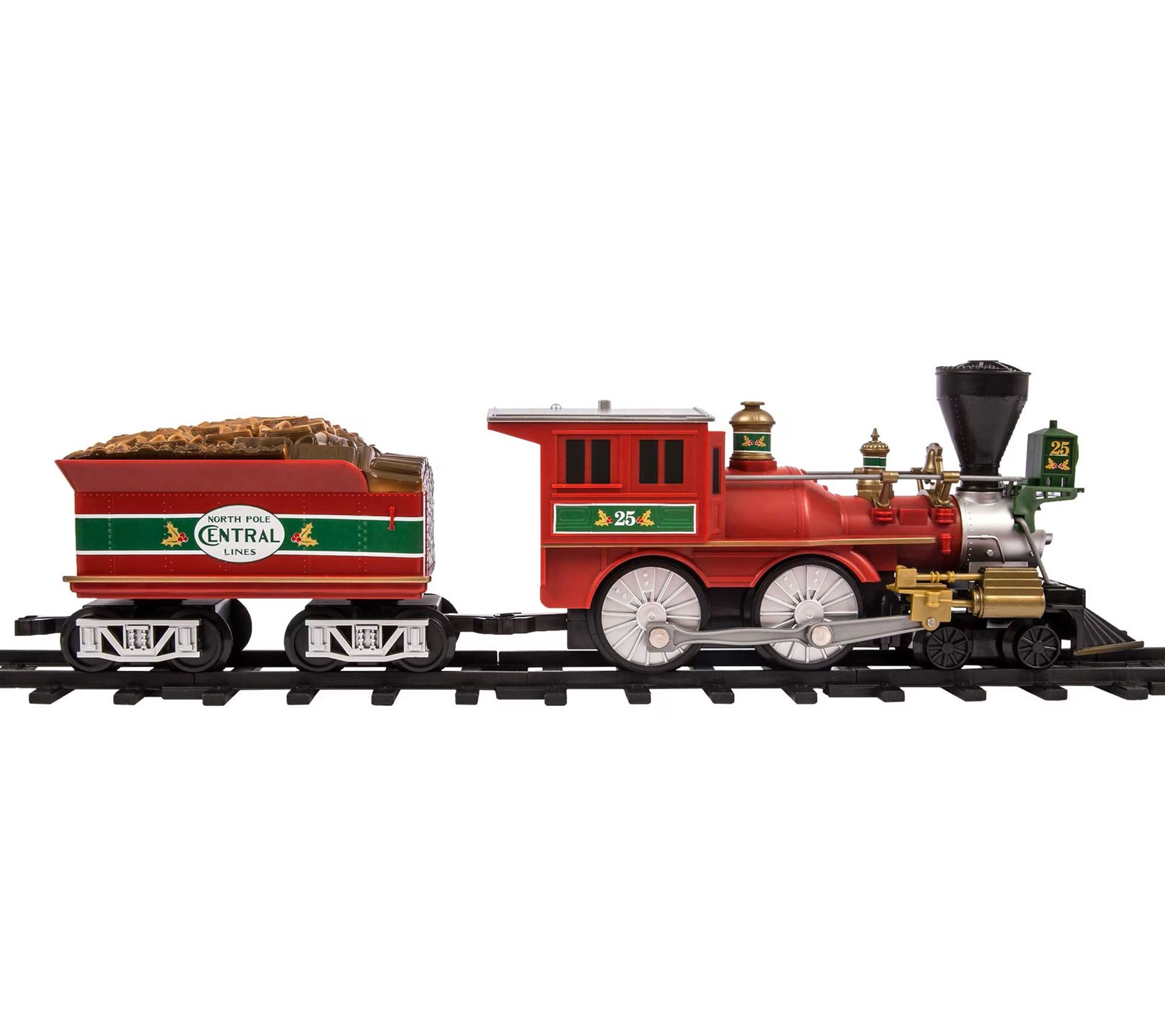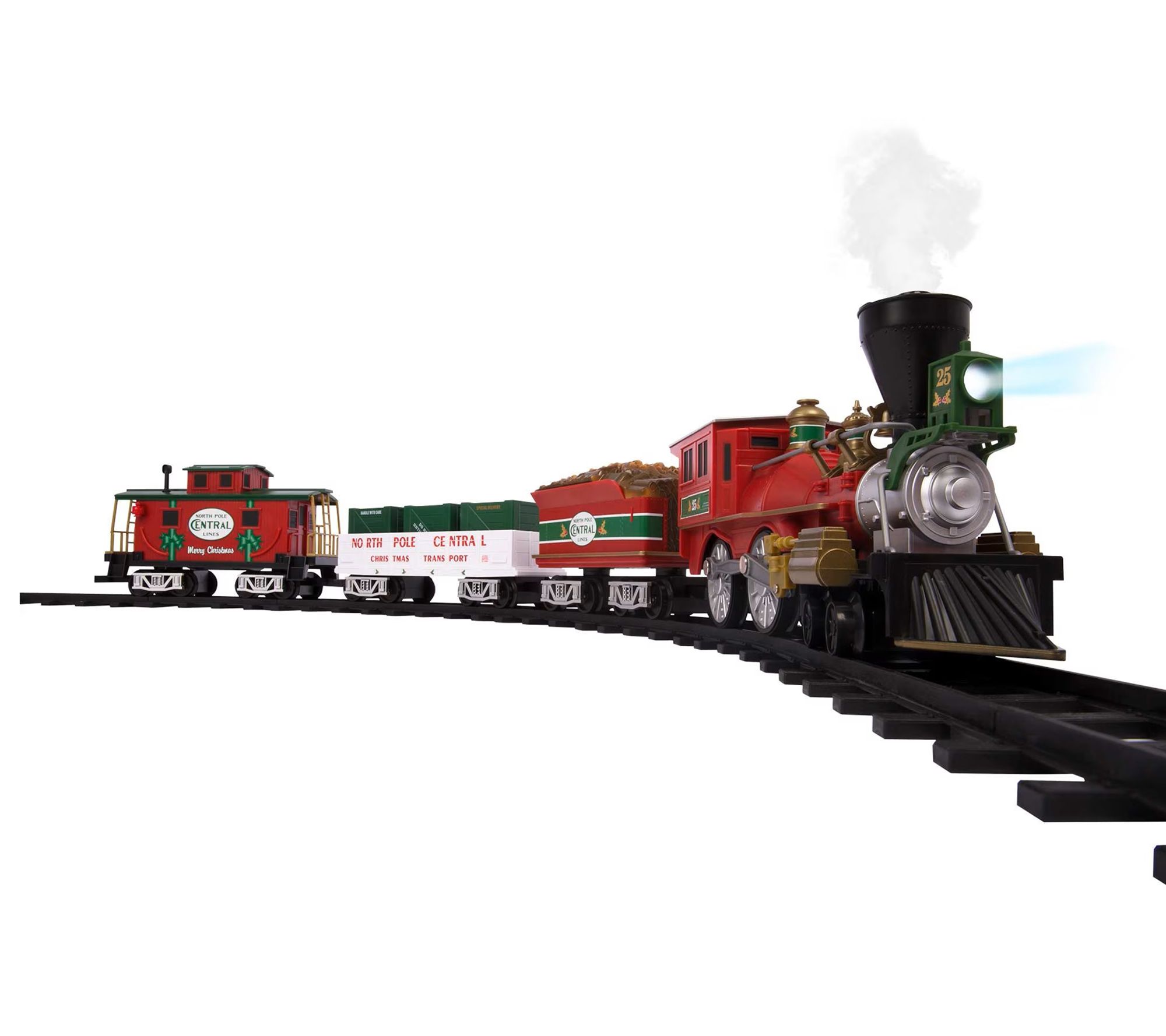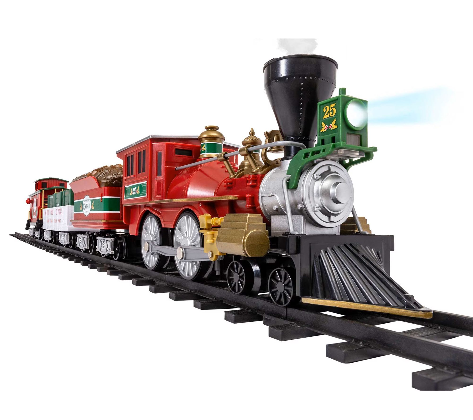 Bring the festive spirit to life with the Lionel North Pole Central RTP Train Set w/ Bluetooth. This charming holiday-themed train set, adorned with ribbons, bows, and holly, lets you control the action via the LionChief App. Whether it's for family gatherings or a delightful holiday display, this set is sure to make your holiday season magical. From Lionel.