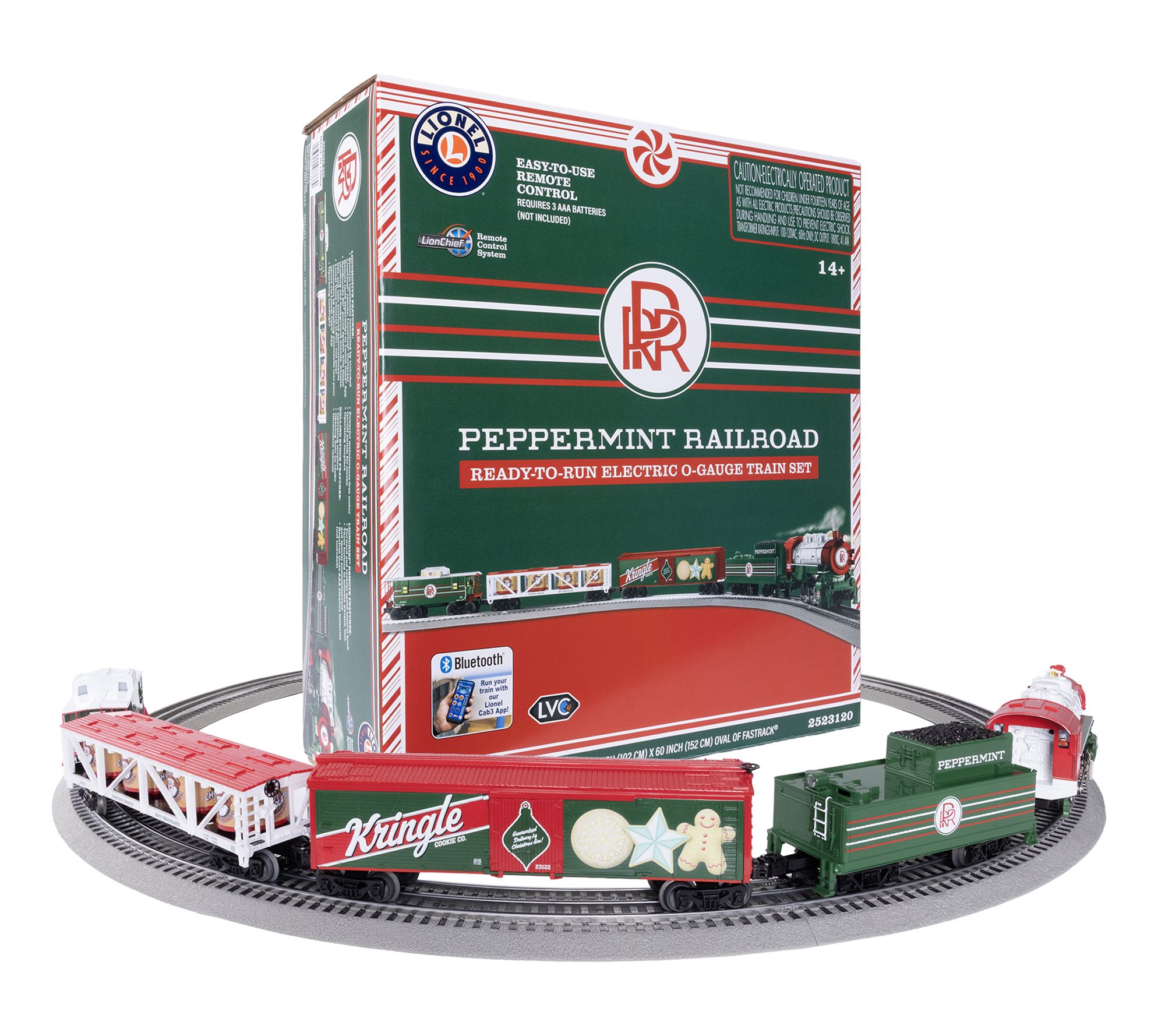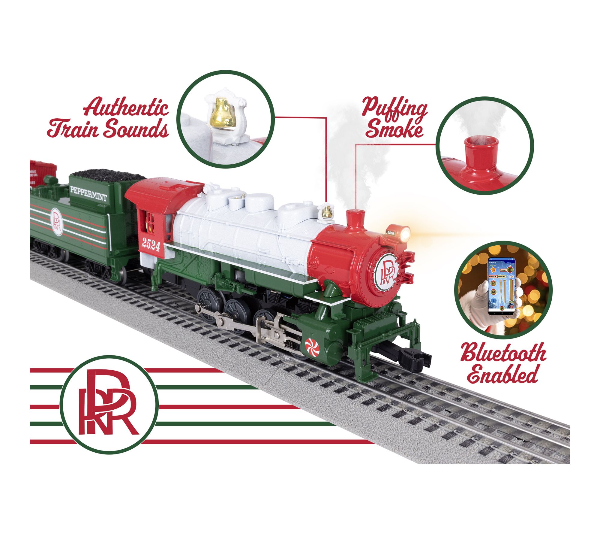 Create a festive centerpiece for your holiday decor with this electric train set, complete with classic peppermint-themed details, realistic sounds, and lights. Effortlessly control the locomotive using the included remote or a smart device, while family and friends gather around to watch the train circle the tree. From Lionel.