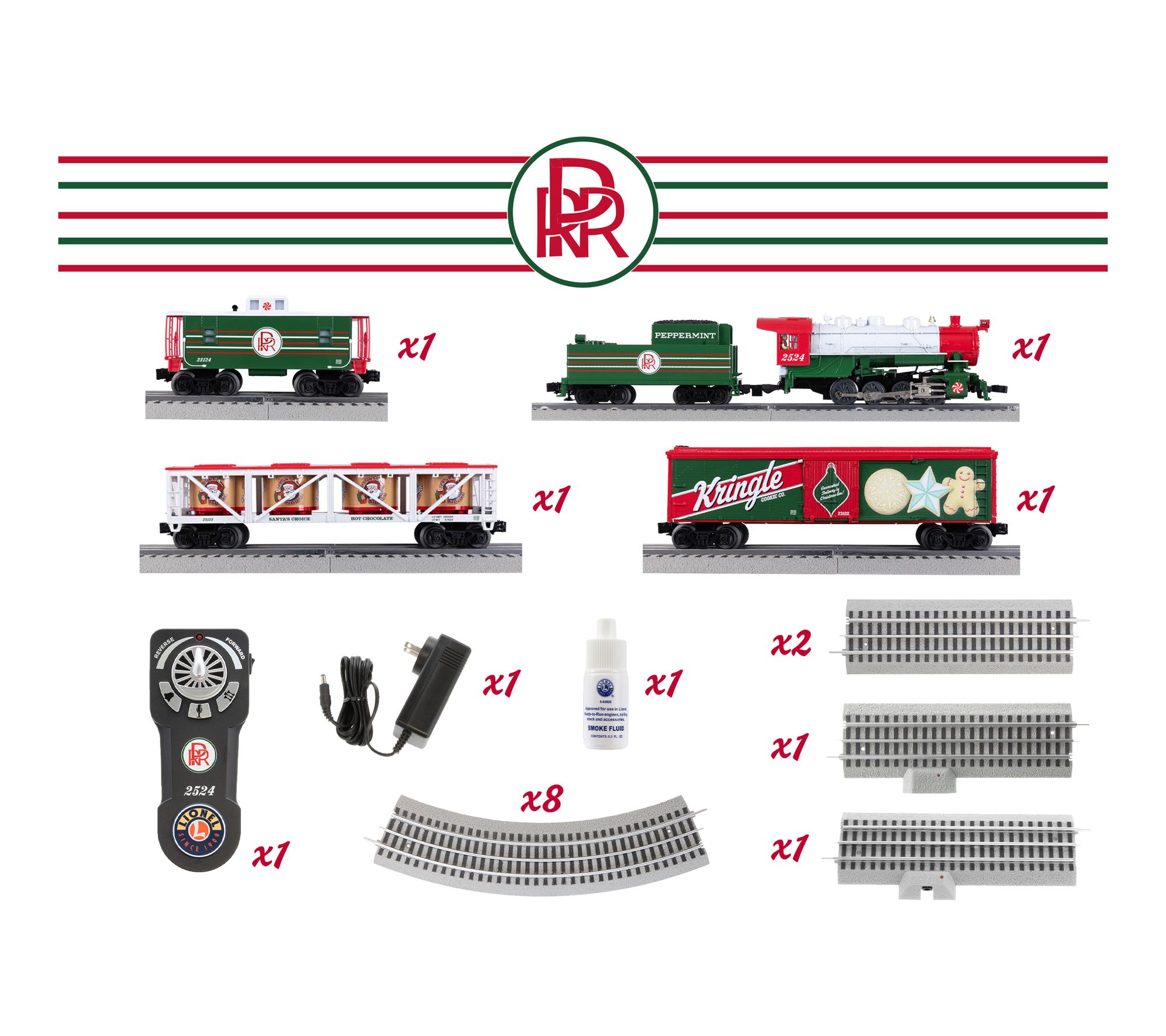 Includes 0-8-0 locomotive, tender, reefer car, vat car, caboose, eight curved O36 FasTrack sections, two straight 10" FasTrack sections, terminal FasTrack section, Plug-Expand-Play Power Lock-on section, wall-pack power supply, LionChief remote