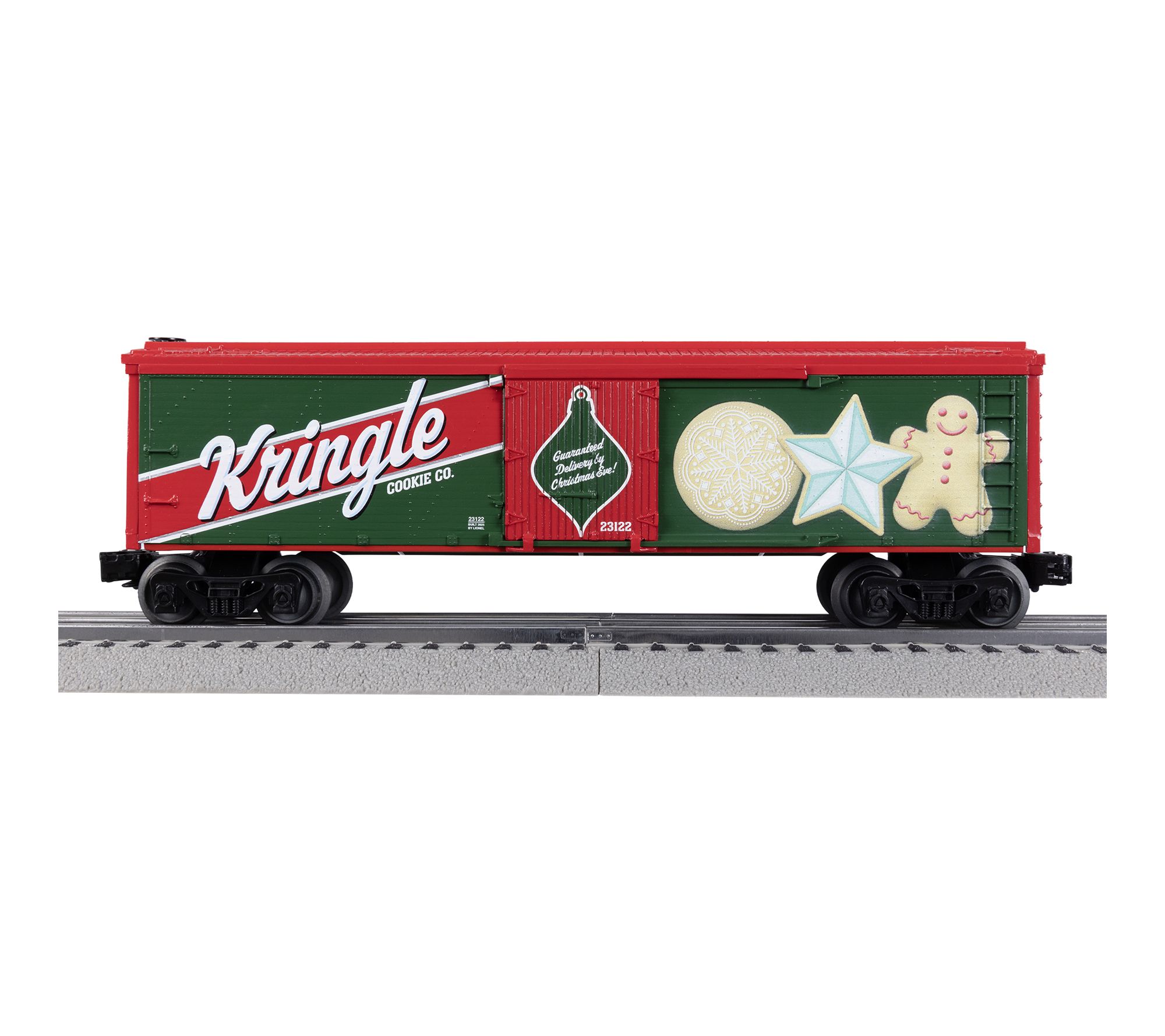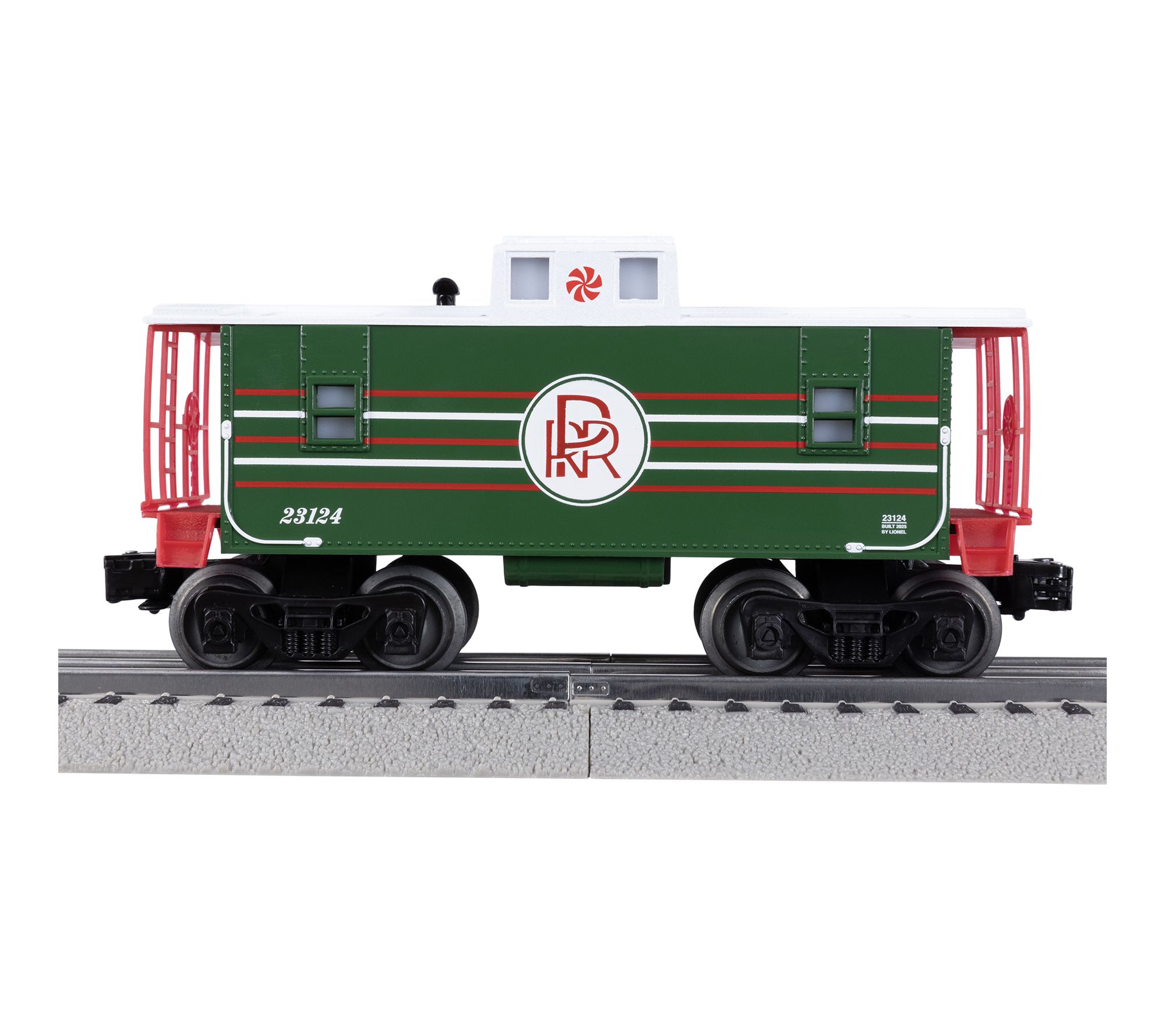 Electric O Gauge train set with Bluetooth 5.0 compatibility; detailed decoration; sounds, smoke, lights; opening doors on reefer car; illuminated caboose