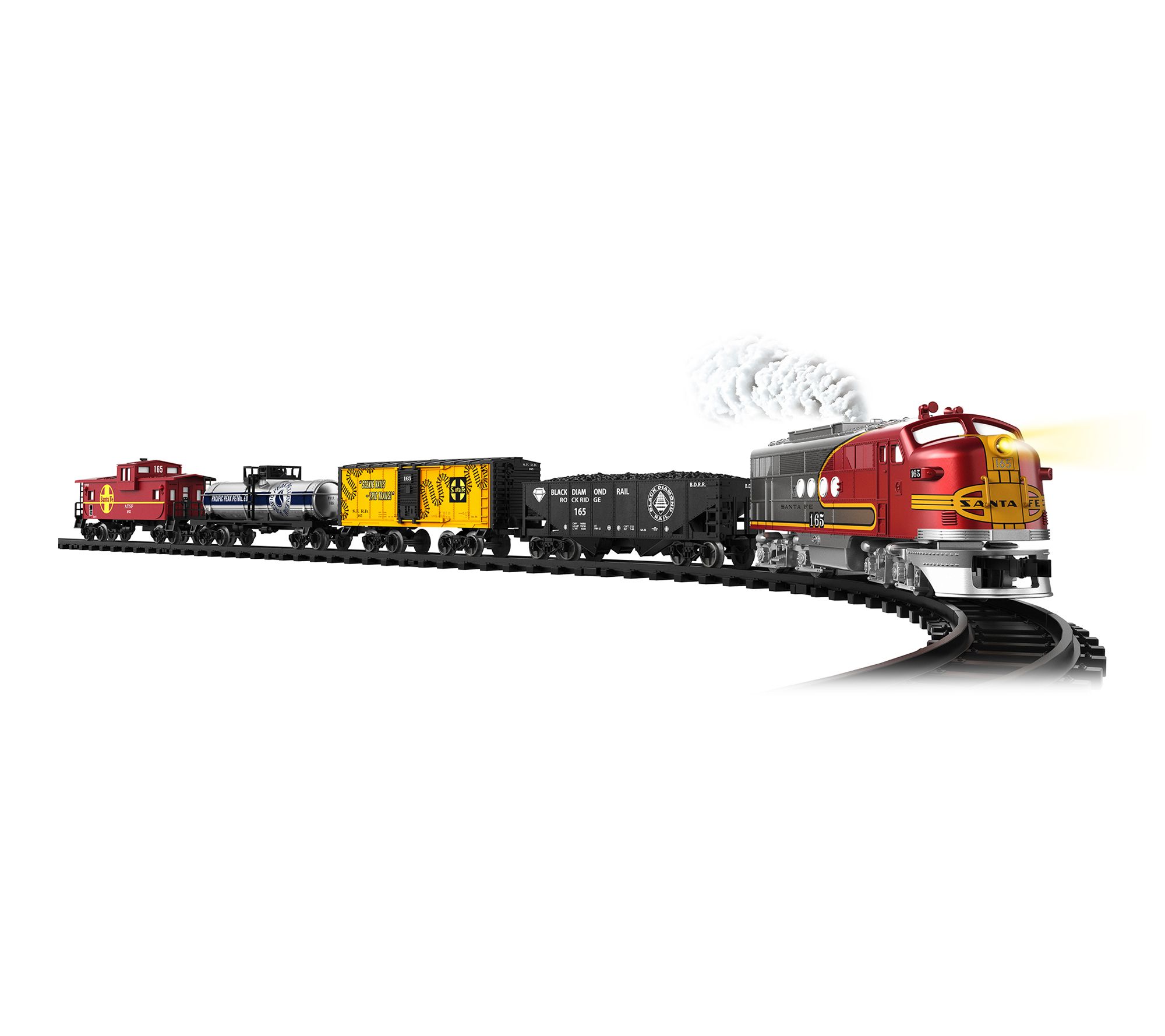 Bring the excitement of classic railroads to your home with this battery-operated train set, featuring a highly detailed locomotive, rolling stock, realistic water vapor smoke effects, and authentic train sounds. With easy remote or Bluetooth control, you can create imaginative layouts using the included O-Gauge track pieces, switches, and trackside accessories for hours of creative play. From Lionel.