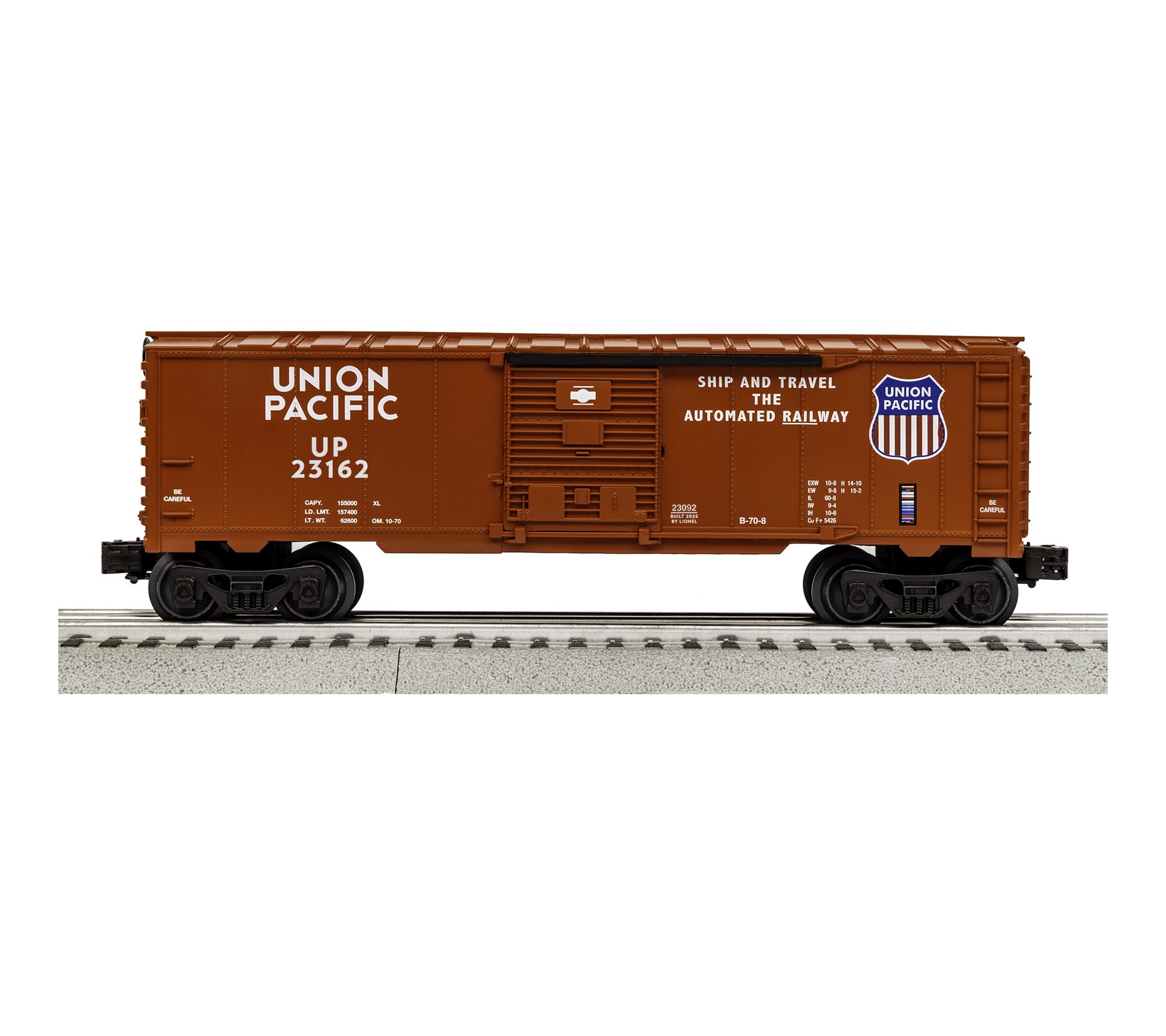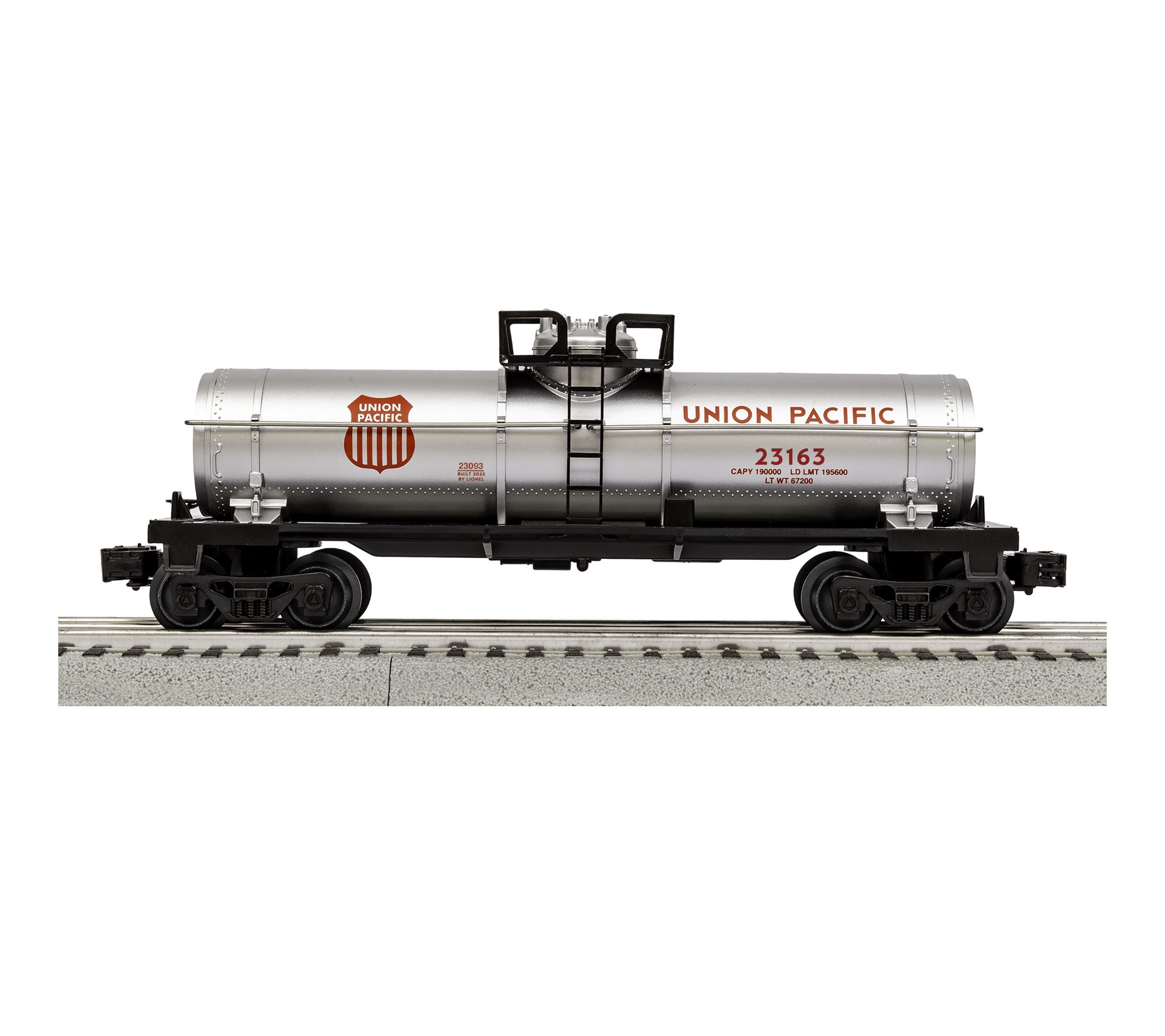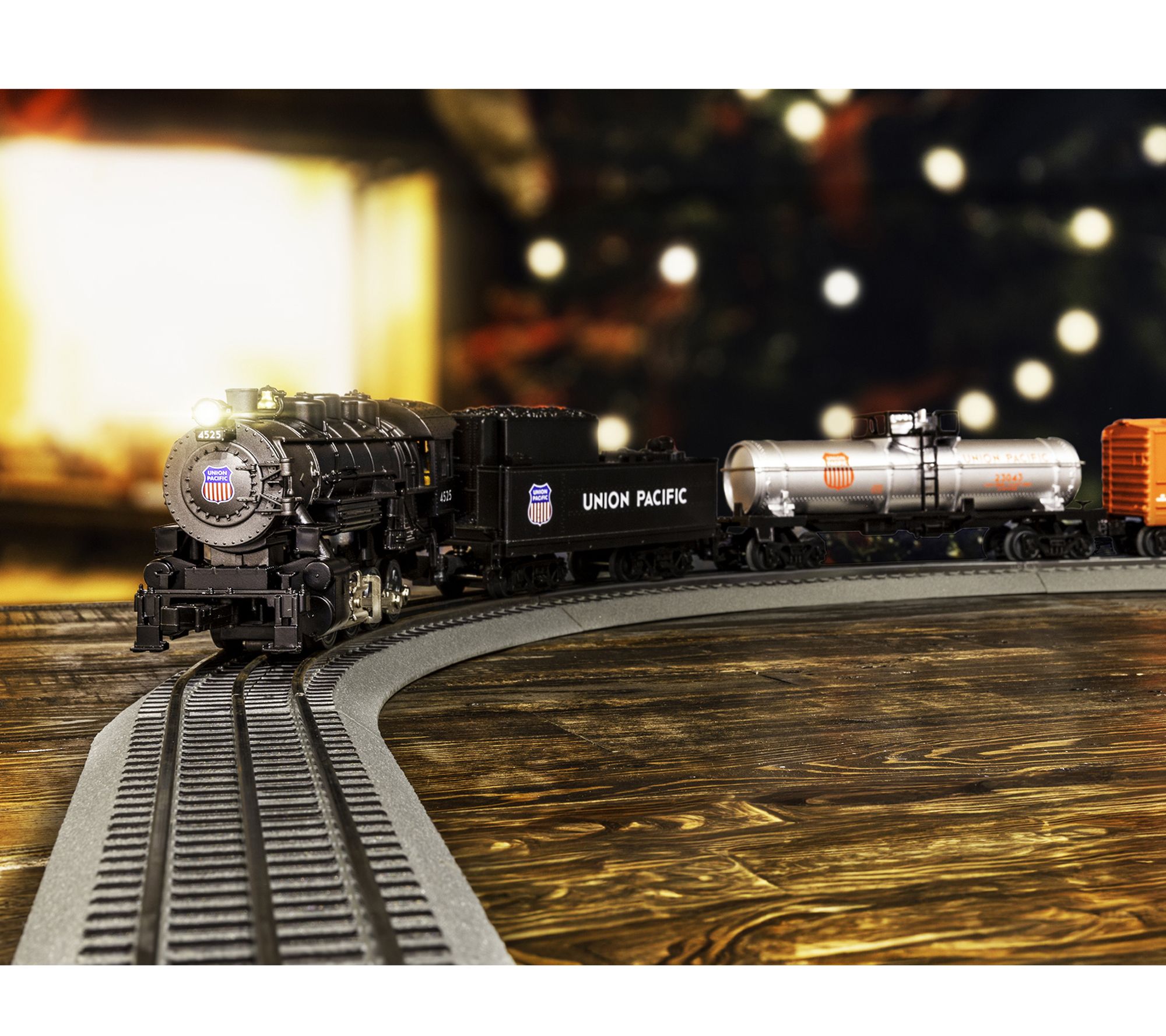 Includes 0-8-0 Steam Locomotive, Tender, Union Pacific Boxcar, Union Pacific Tank Car, Union Pacific Caboose, eight curved O36 FasTrack sections, two straight 10" FasTrack sections, Terminal FasTrack section, Plug-Expand-Play Power Lock-on section, Wall-pack Power Supply, LionChief Remote for Locomotive