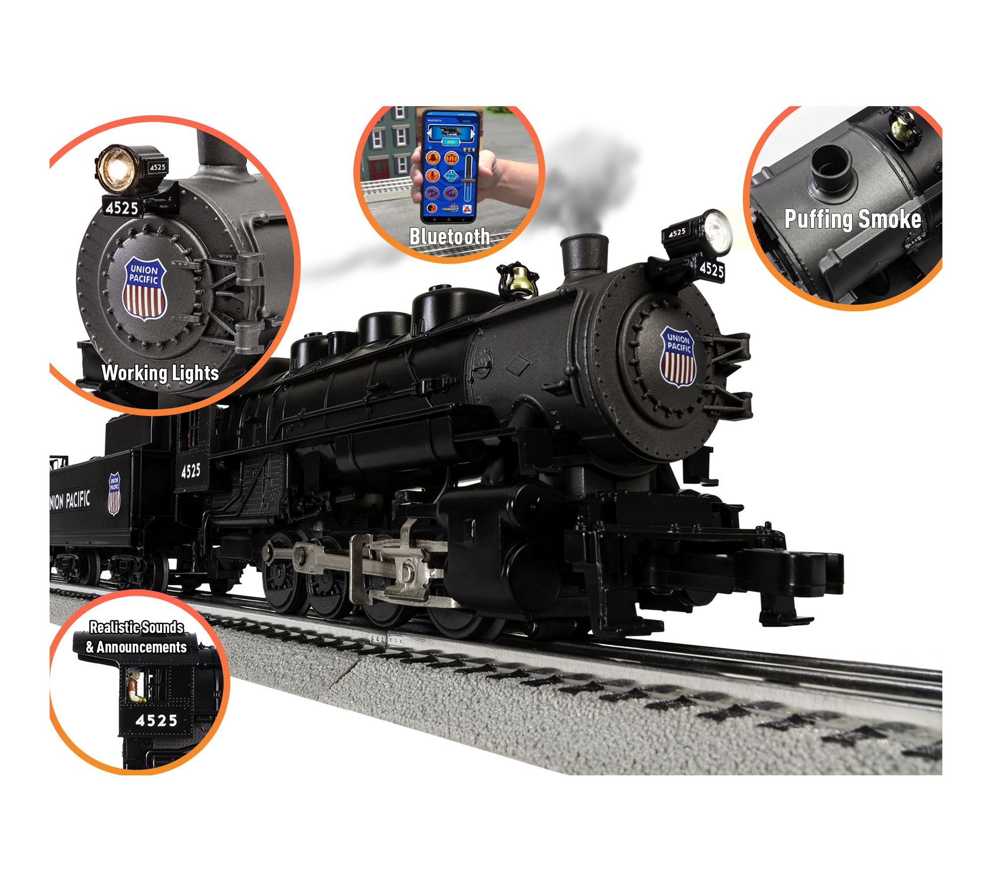 Relive the excitement of classic railroading with this electric train set, featuring detailed cars, realistic sounds, puffing smoke, and working lights. Effortlessly control the action from your smart device or included remote, making every run a new adventure for train enthusiasts and hobbyists alike. From Lionel.