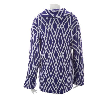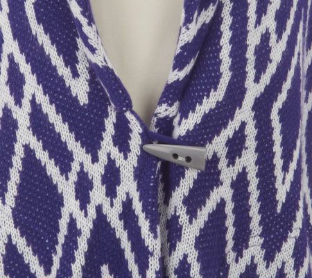 There's a pattern here. And it looks great! Bold and stylish, this jacquard print cardigan features a shawl collar and single toggle closure. Pair with jeans or leggings for a modern, trendy look. From the Lisa Rinna Collection.