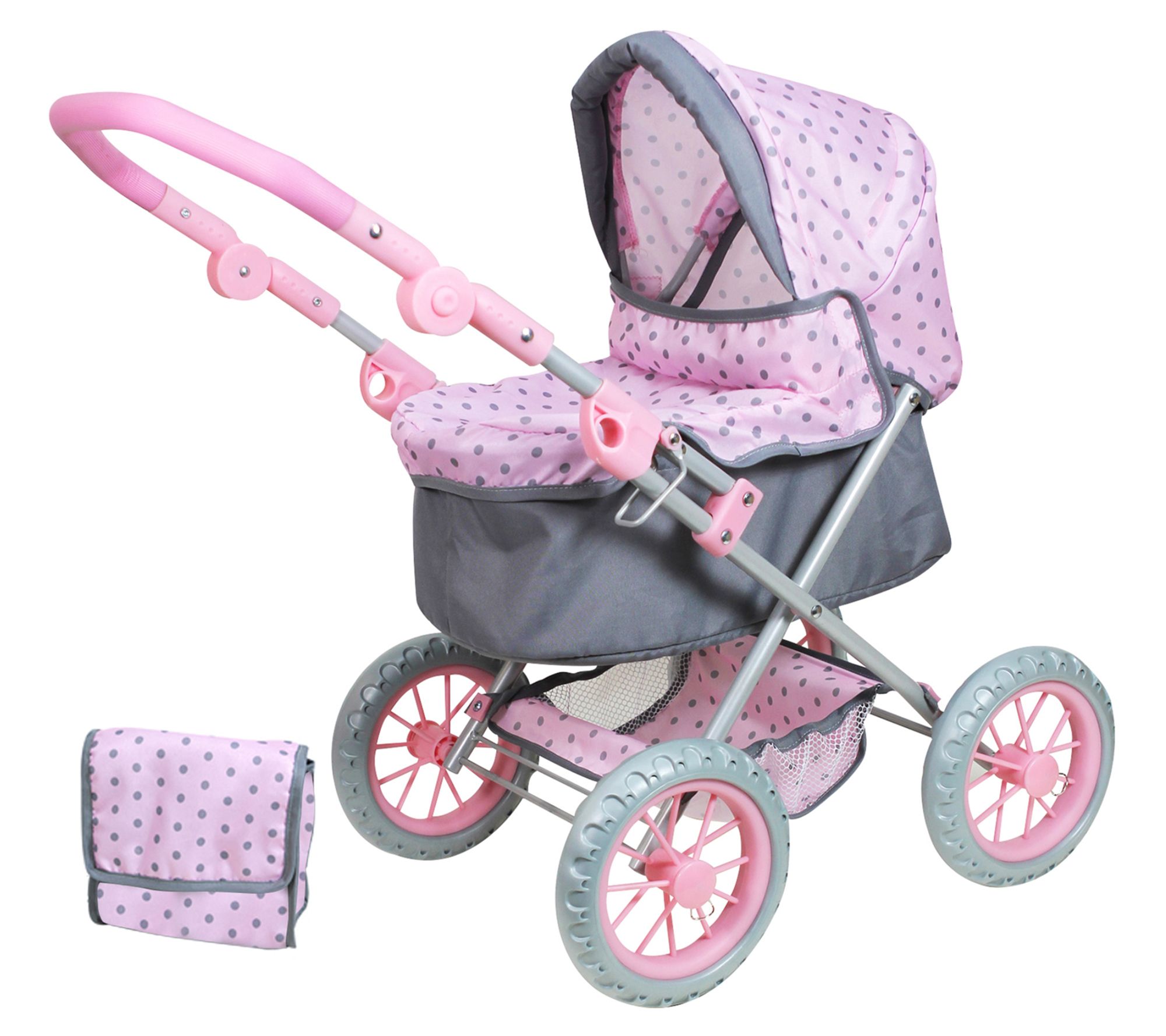 • Includes doll pram, shopping basket, and changing bag
