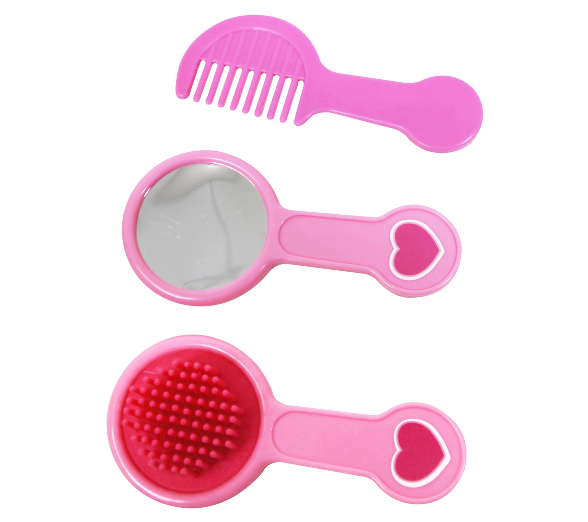 • Includes doll, two outfits, comb, handheld mirror, and brush