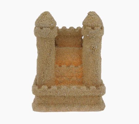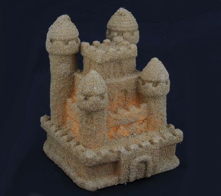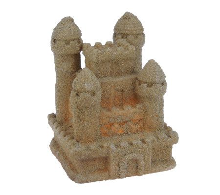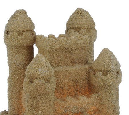This is one sandcastle that won't ever wash away. Designed to resemble a medieval castle, complete with walls and four turrets, this pretty luminary has a truly authentic look and feel. That's because it's made of wax that's coated with real sand on the outside surface. And it features a timer mode--set it once, and it turns on and glows for five hours at the same time each day! From the Valerie Parr Hill Collection.