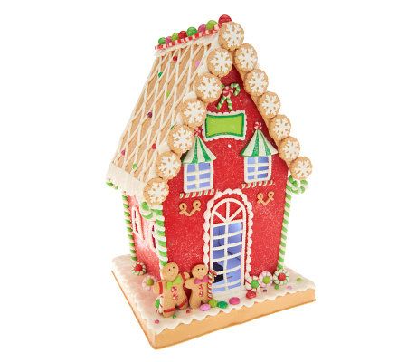 A sweet accent for your kitchen, this gingerbread house is so realistic you might want to take a bite! Realistic gumdrops, candy canes, and icing are yummy details, while the timer lights the house for an inviting glow. From the Valerie Parr Hill Collection.