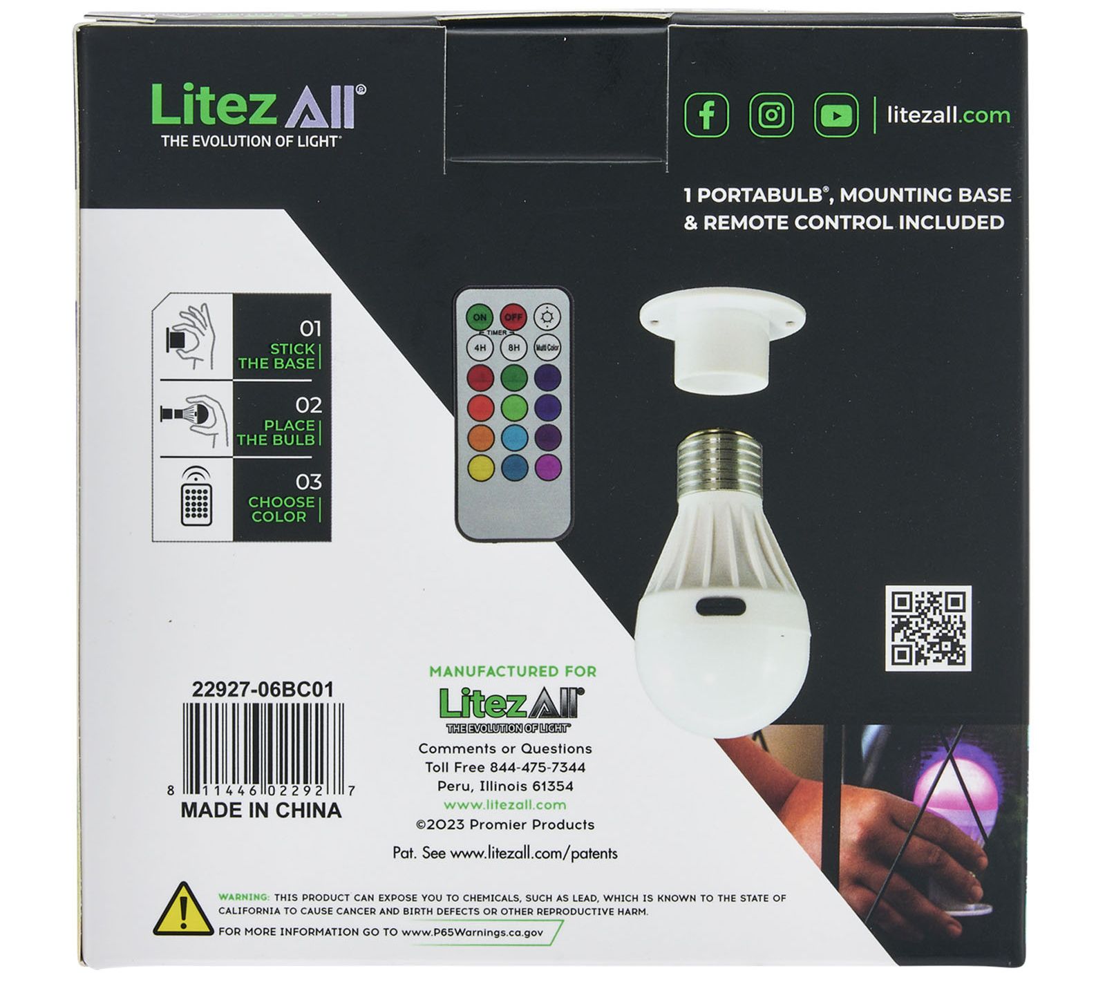 LitezAll Remote Controlled Colored PortaBulb 4ack