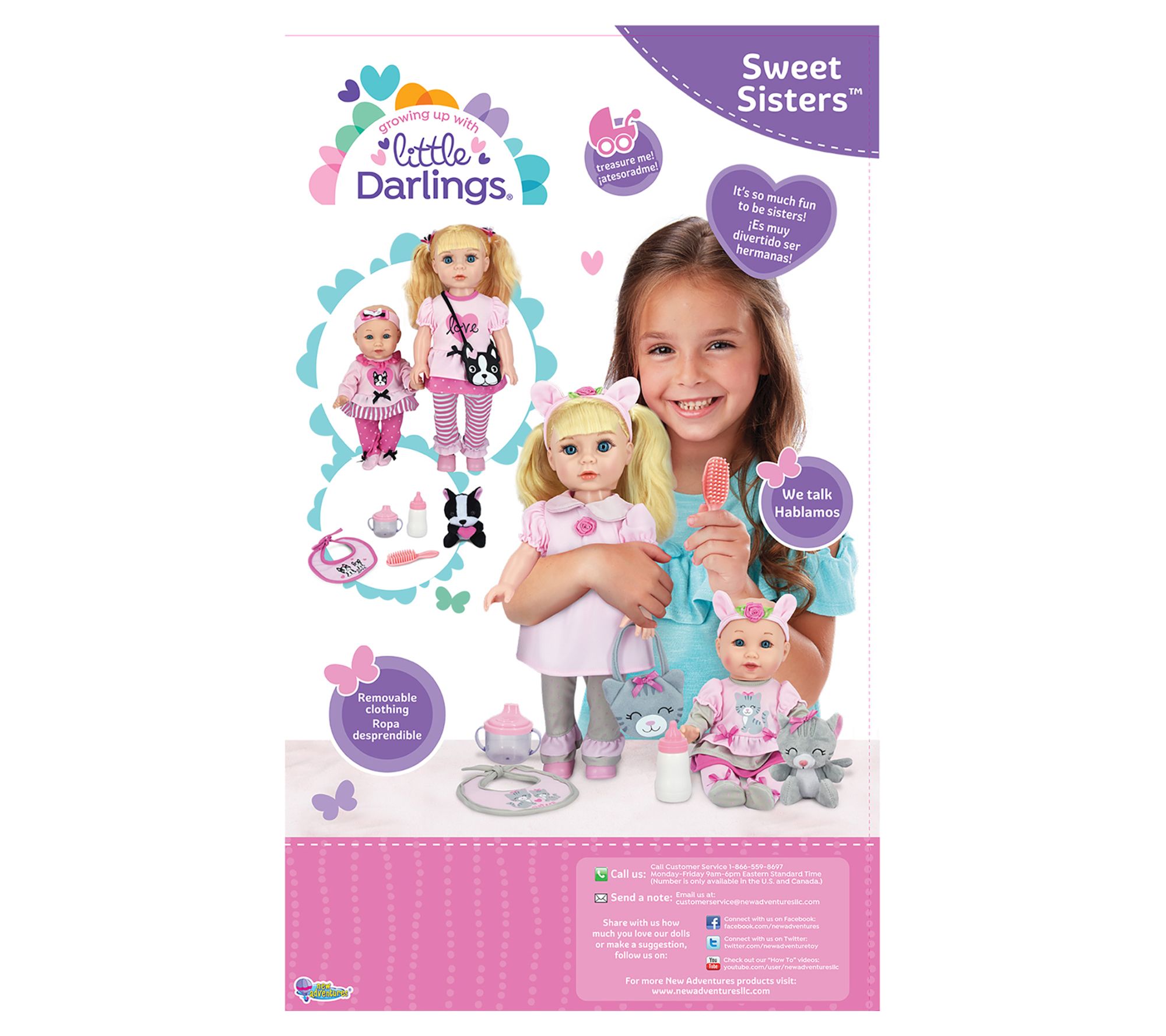 Double the playtime fun with this Little Darlings Sweet Sisters play set. It comes with both a big sister and a little sister doll, along with lots of accessories to spark the imagination. From New Adventures.