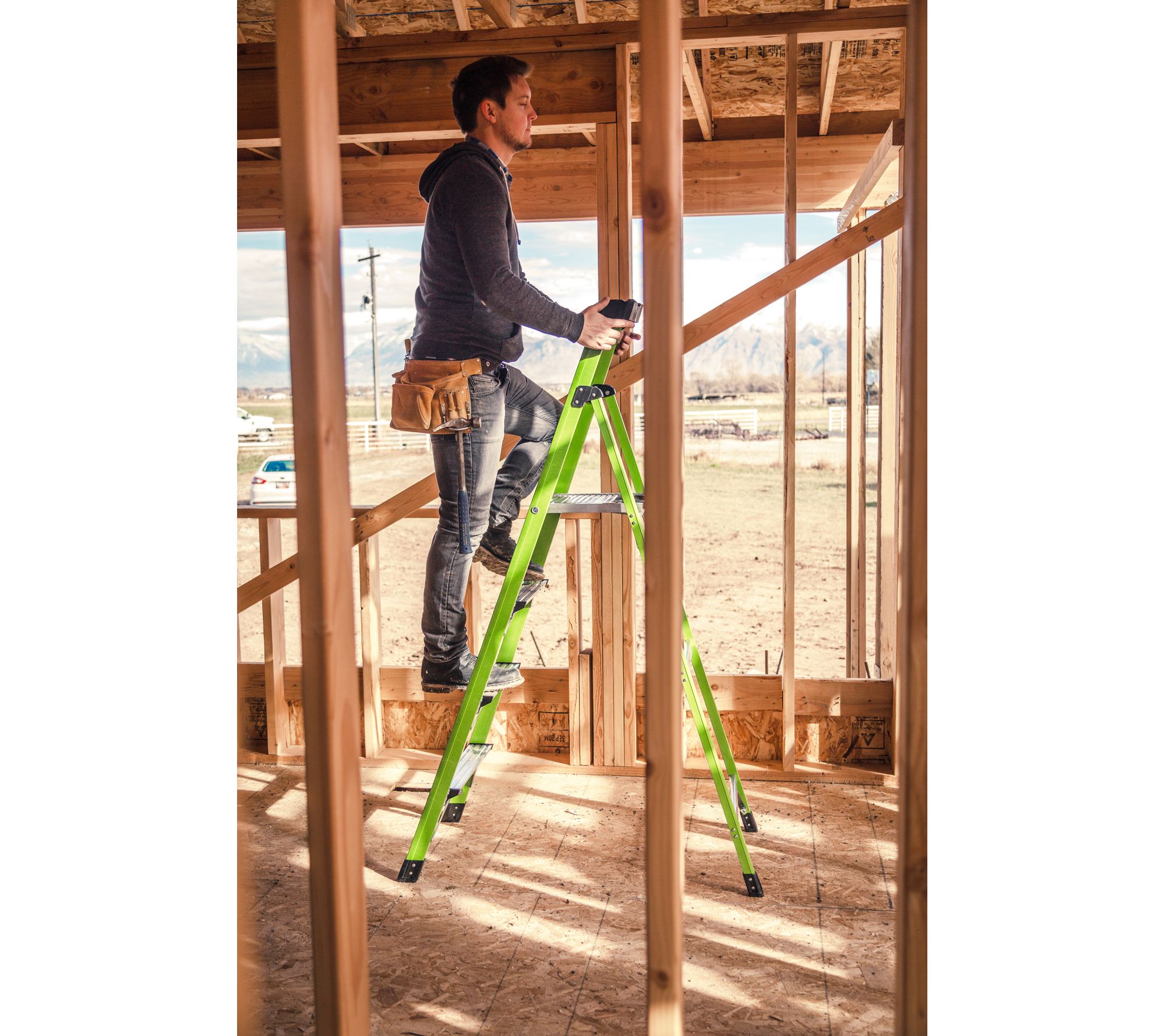 Lightweight yet durable, the MightyLite fiberglass step ladder includes several helpful features, including a convenient top cap to keep your tools nearby and Ground Cue--a raised strip on the bottom rung that signals you're on the last step. From Little Giant.