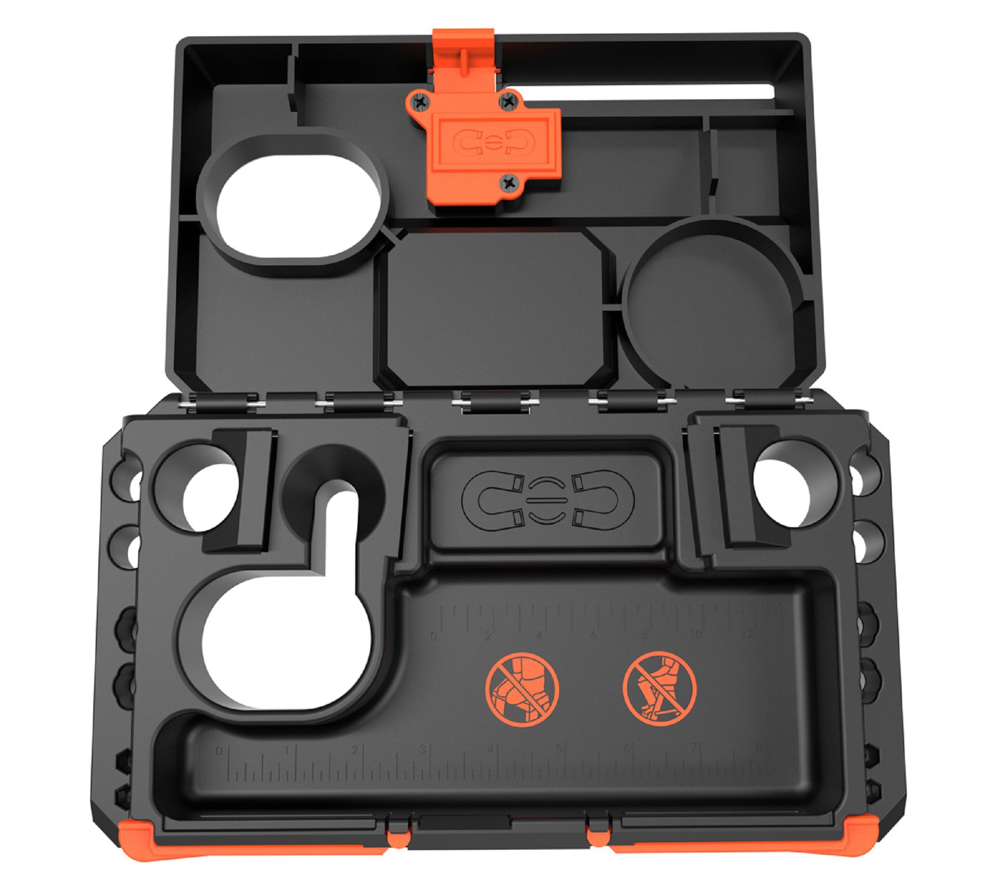 • Holds hand tools, hammers, and drills securely