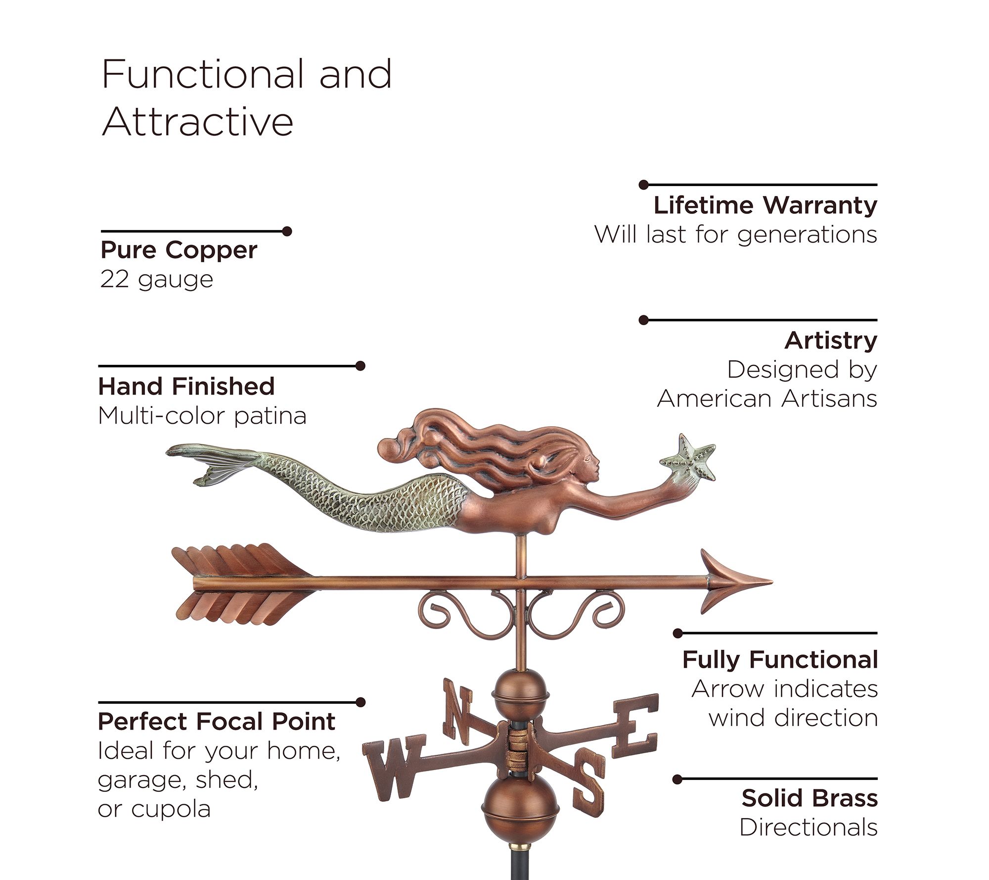 Little Mermaid Weathervane - Pure Copper by Good Directions