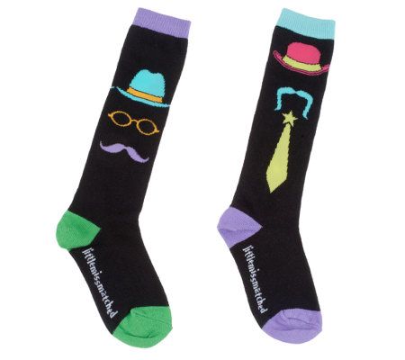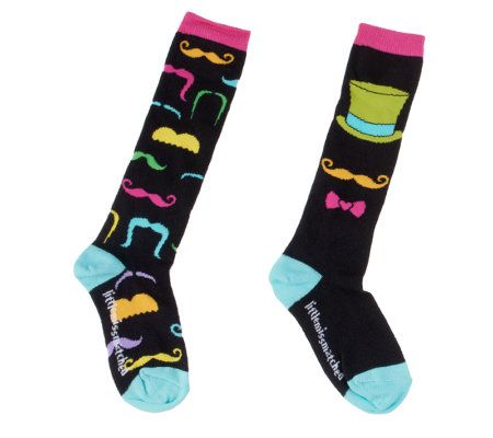 Your feet will look handsome in these six invisible man knee-high socks. Offering up to 36 combinations, they can be mixed and matched to your heart's content. Fun designs include hats, mustaches, and kisses in coordinating colors. From Little MissMatched.
