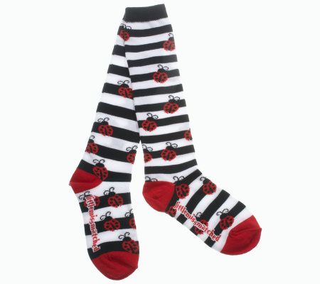 What's black and white and red all over? These darling socks! No joke, they're as cute as a bug--a ladybug, that is. From Little MissMatched.
