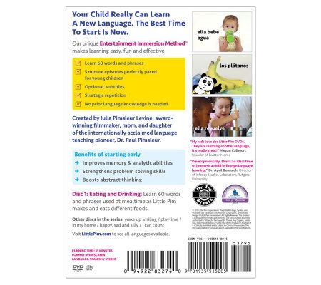 Look who's talking! Introduce your child to a new language at the age they learn best, in the way they learn best--the immersion method. Using both sight and sound with an entertaining DVD, music CD, and book, your child will experience both new words and new cultures. Best of all, it's designed by Julia Pimsleur Levine, daughter of the creator of the famed Pimsleur Method language program for adults--and a mom herself. From Little Pim.