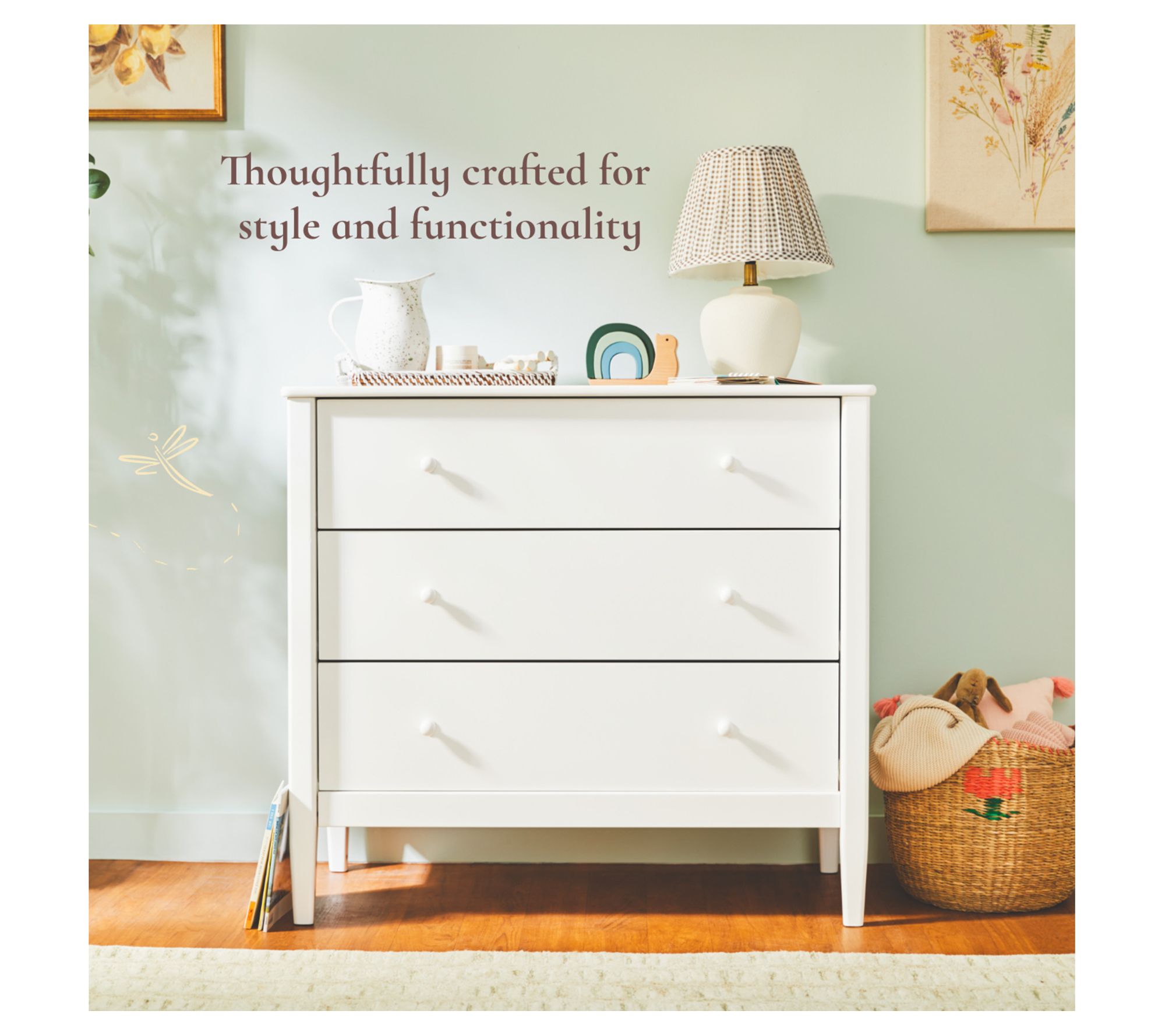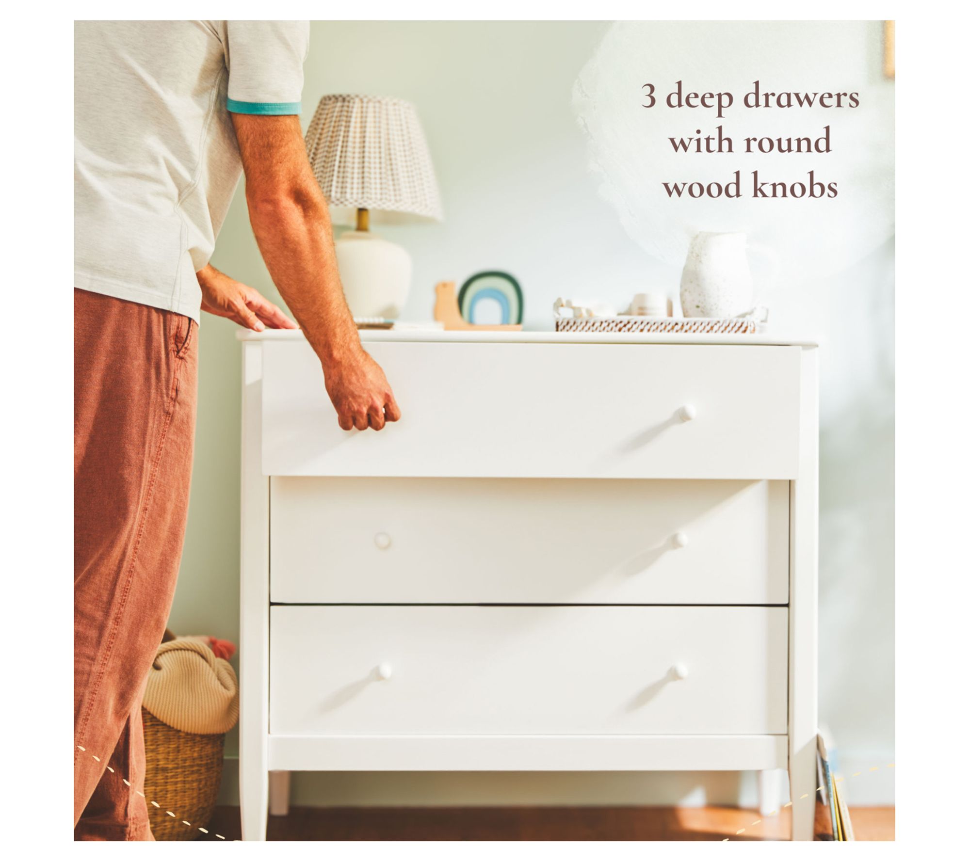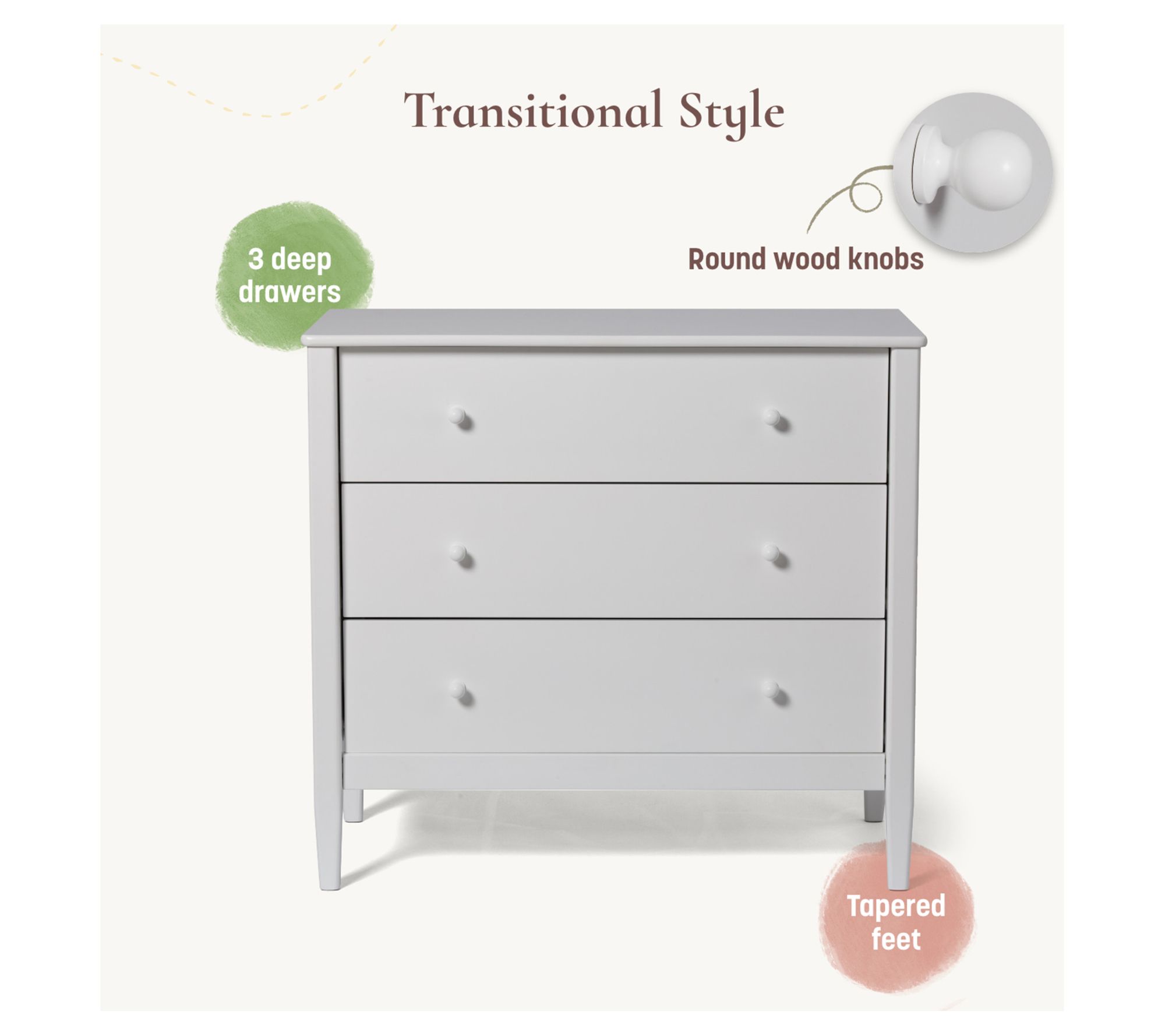 Bring inviting style and organized storage to your home with this single dresser, featuring rounded edges, fully shaped posts, and elegant tapered feet. With three deep drawers and premium round wood knobs, it's an ideal piece for freshening up a bedroom or adding extra space to a guest room. From Little Seeds.