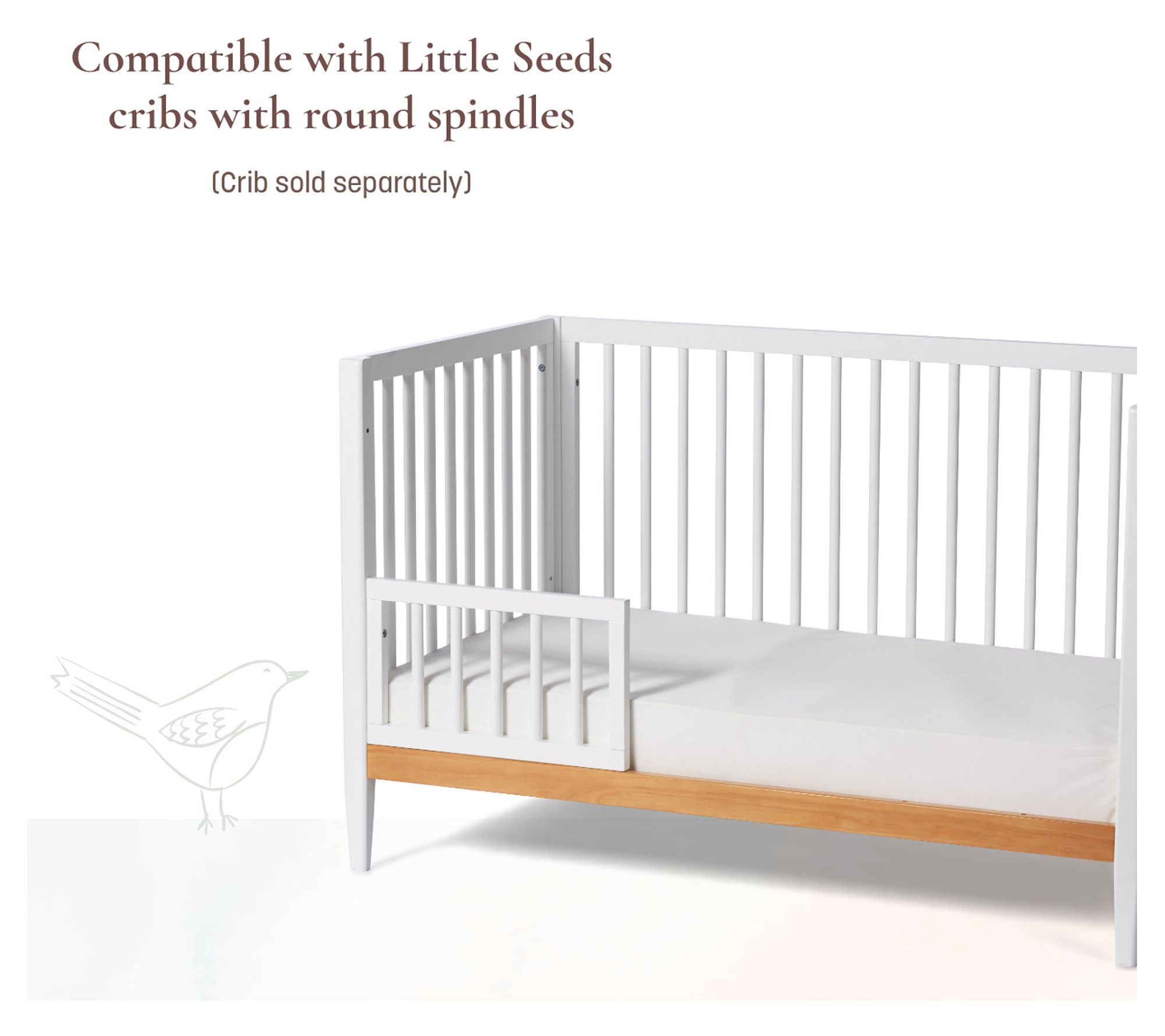 • Compatible with Little Seeds cribs with spindles; helps convert crib into toddler bed