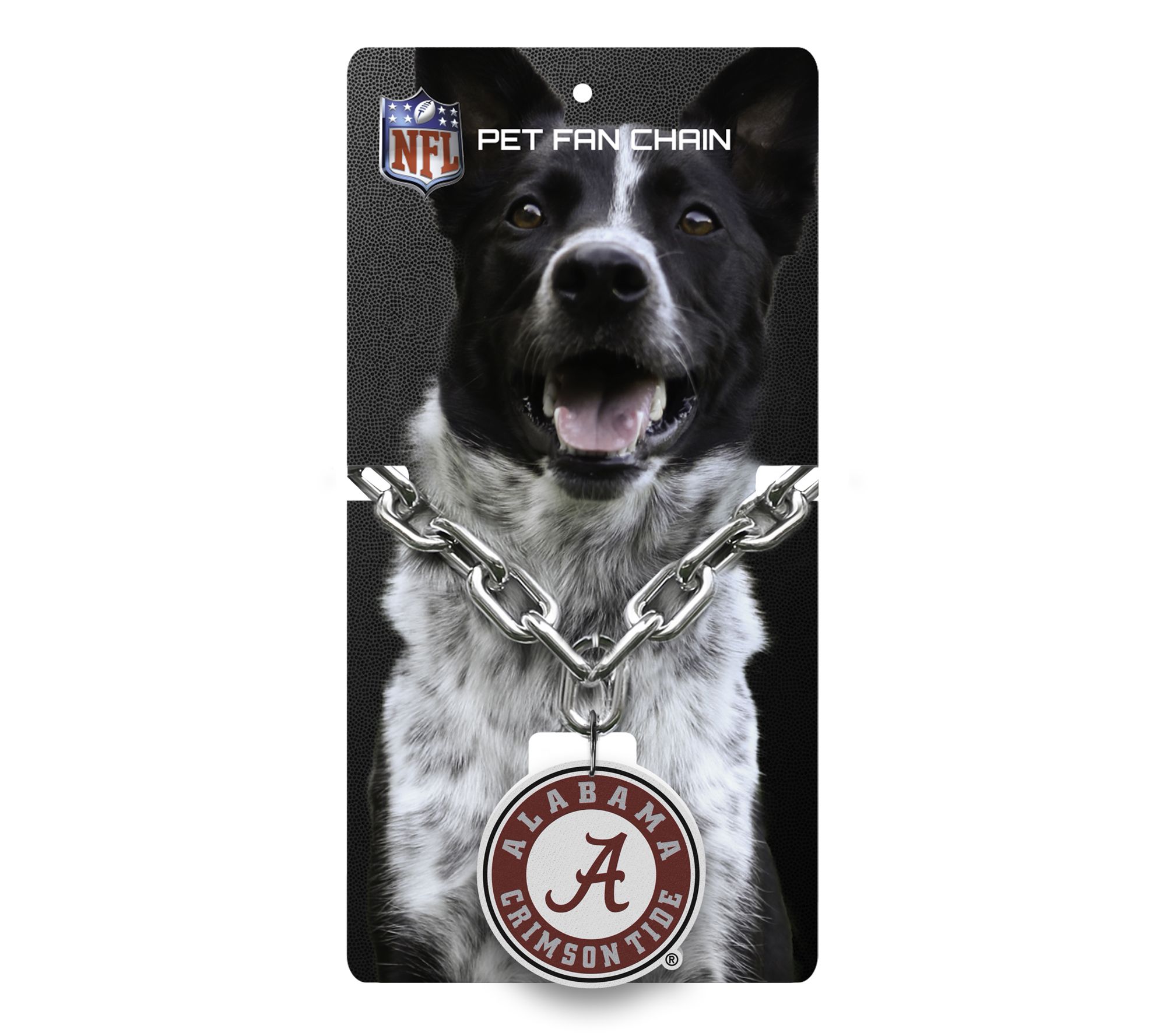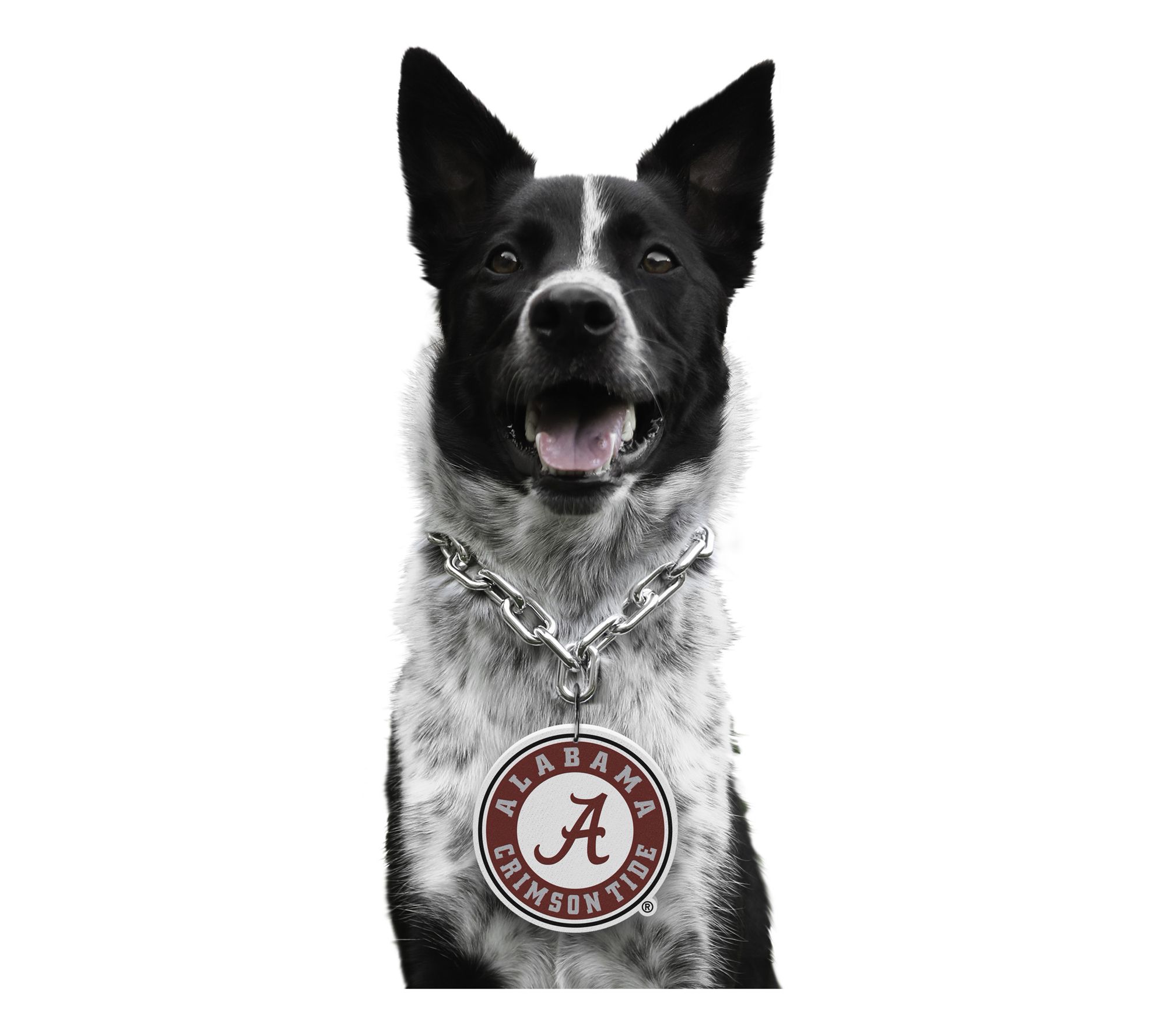 Show your team spirit with the Littlearth NCAA pet fan chain! Perfect for game day, this officially licensed accessory features a vibrant full-color foam team logo, ensuring your pet stands out as a true fan. Made from durable chrome-colored plastic, the adjustable chain links provide a customized fit, suitable for most dogs and cats. From Littlearth.