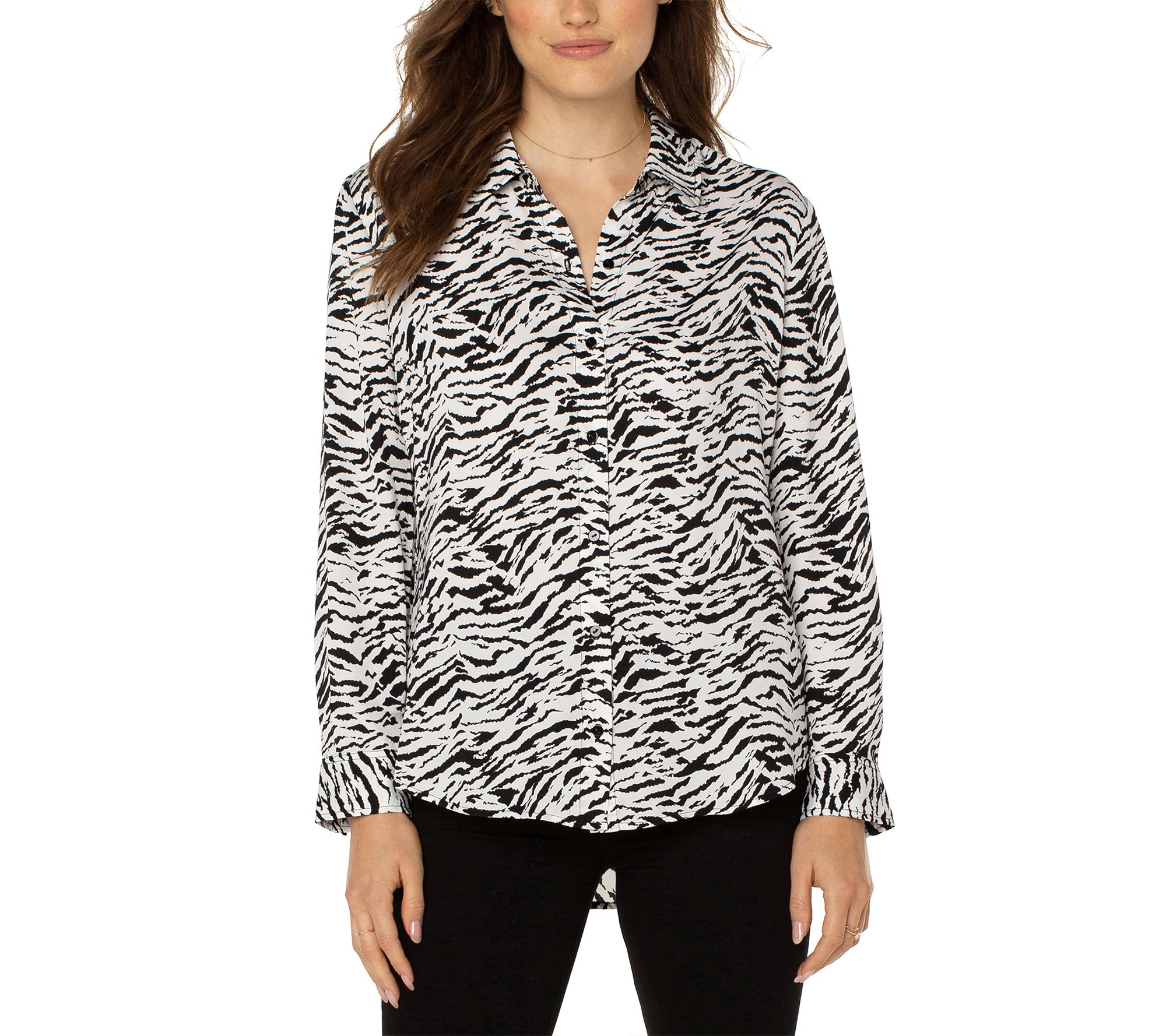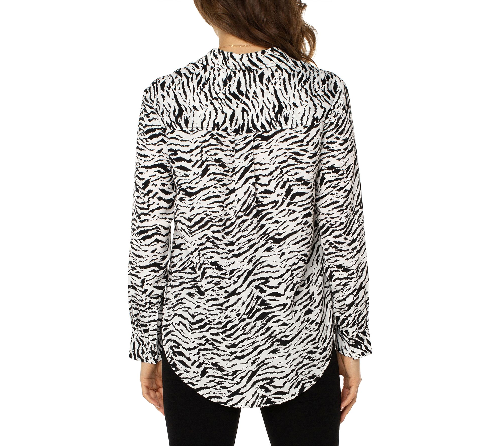 Take a stylish walk on the wild side in a fun blouse that's sure to turn heads, featuring an animal print that easily takes you from the office to a night out on the town. From Liverpool Los Angeles.
