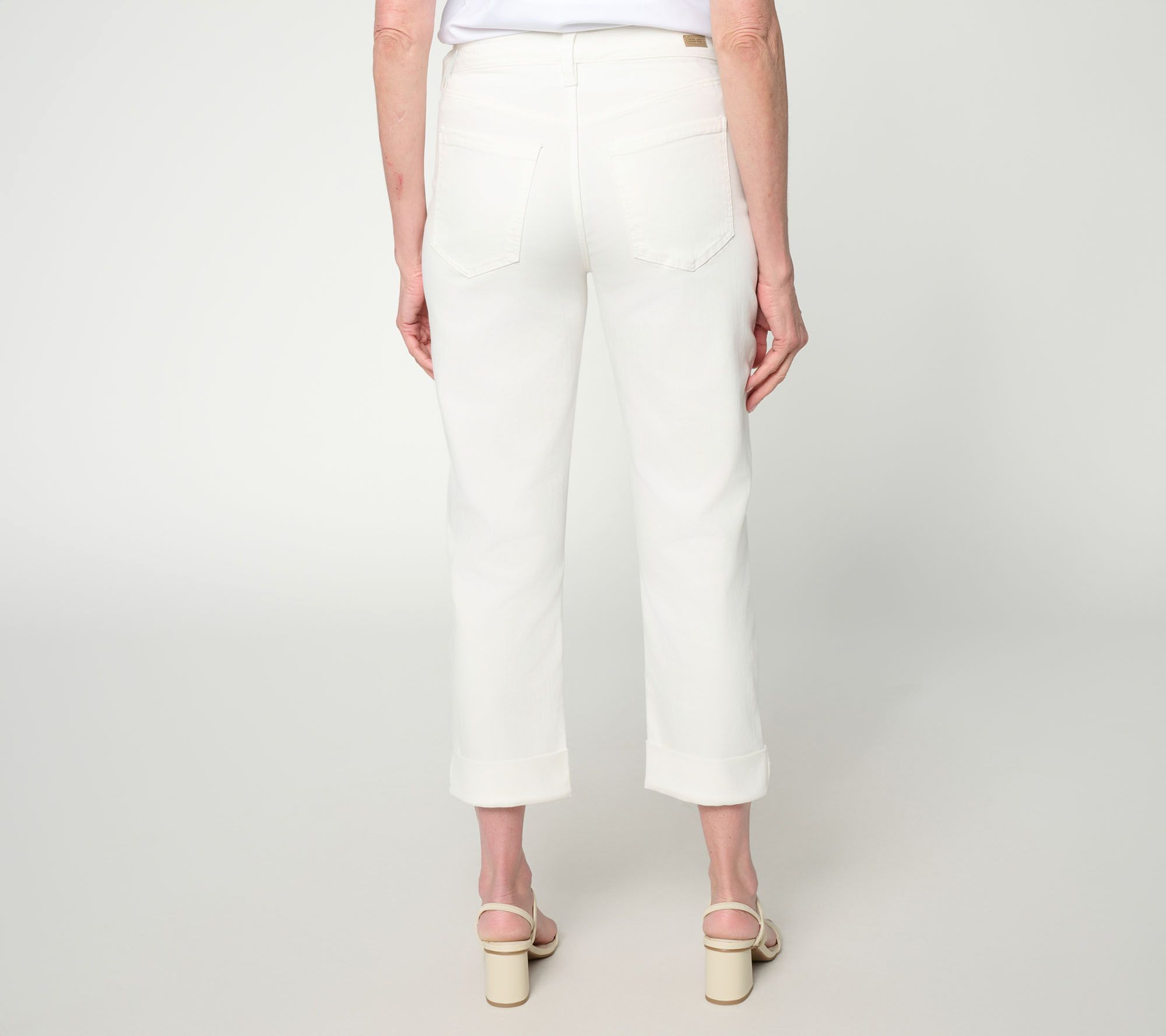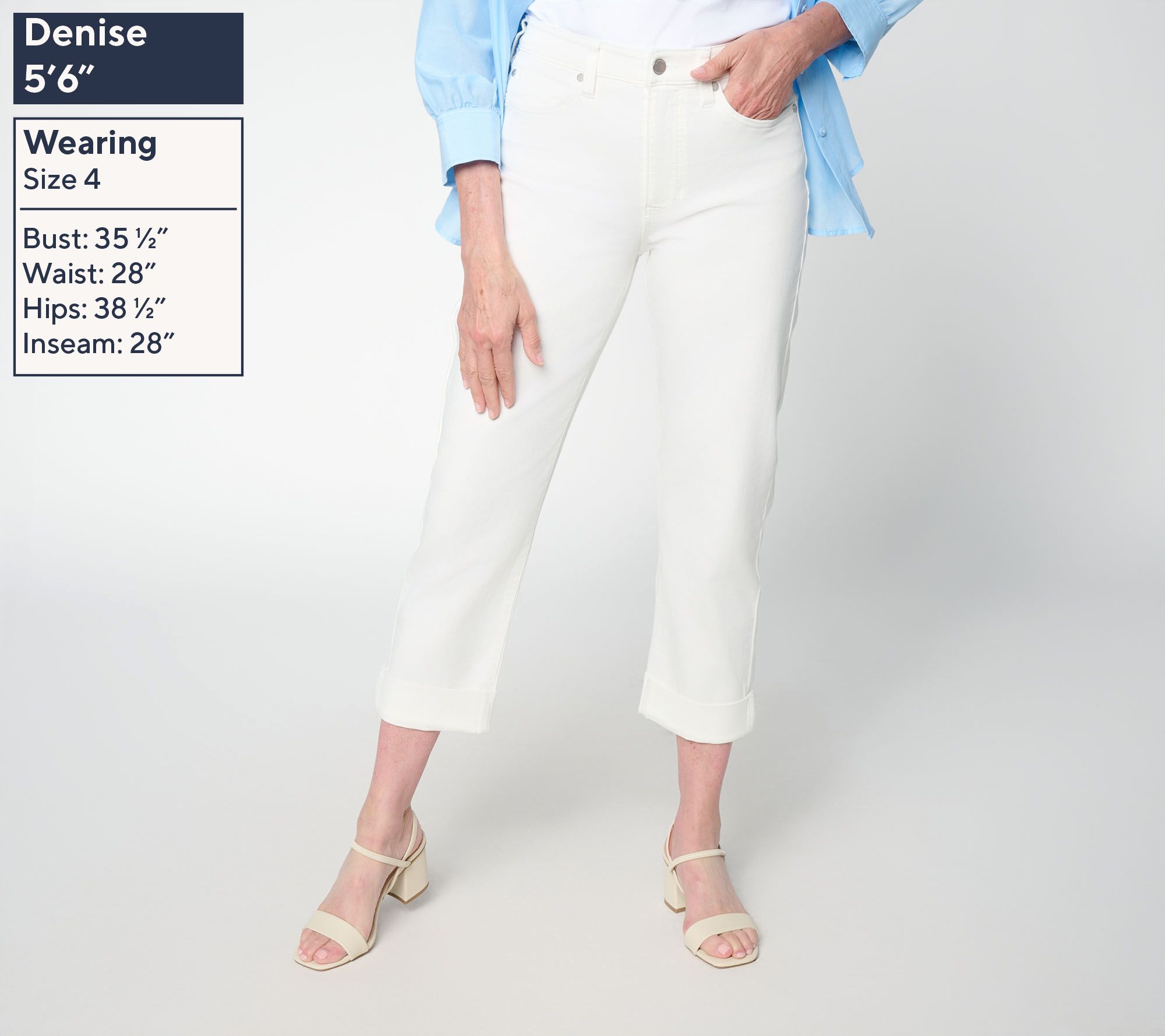 From casual afternoons exploring outdoor markets to cozy brunch meetups, these crop jeans with a wide roll cuff add effortless style to your routine. The semi-fitted shape moves with you, while the straight-leg design and set-in waistband create a polished look you'll love for everyday wear. From Liverpool Los Angeles.