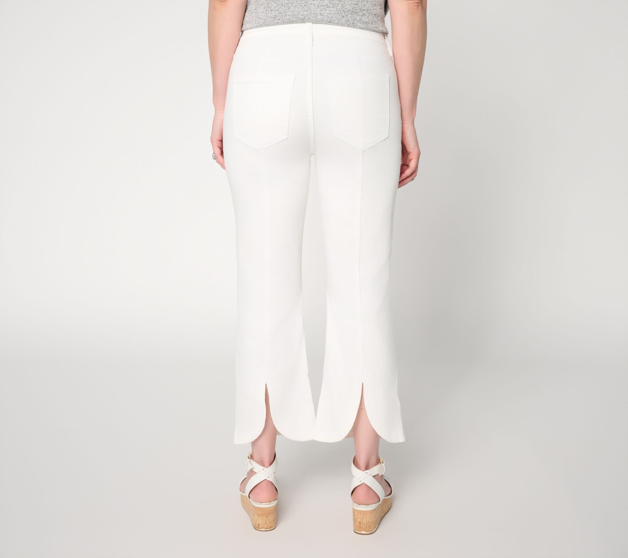 Dress up your sunny days with these crop jeans, featuring a tulip back slit and flared-leg style for just the right amount of fun. The pull-on design and elastic waistband let you enjoy comfort whether you're meeting friends for lunch or strolling on the boardwalk. From Liverpool Los Angeles.