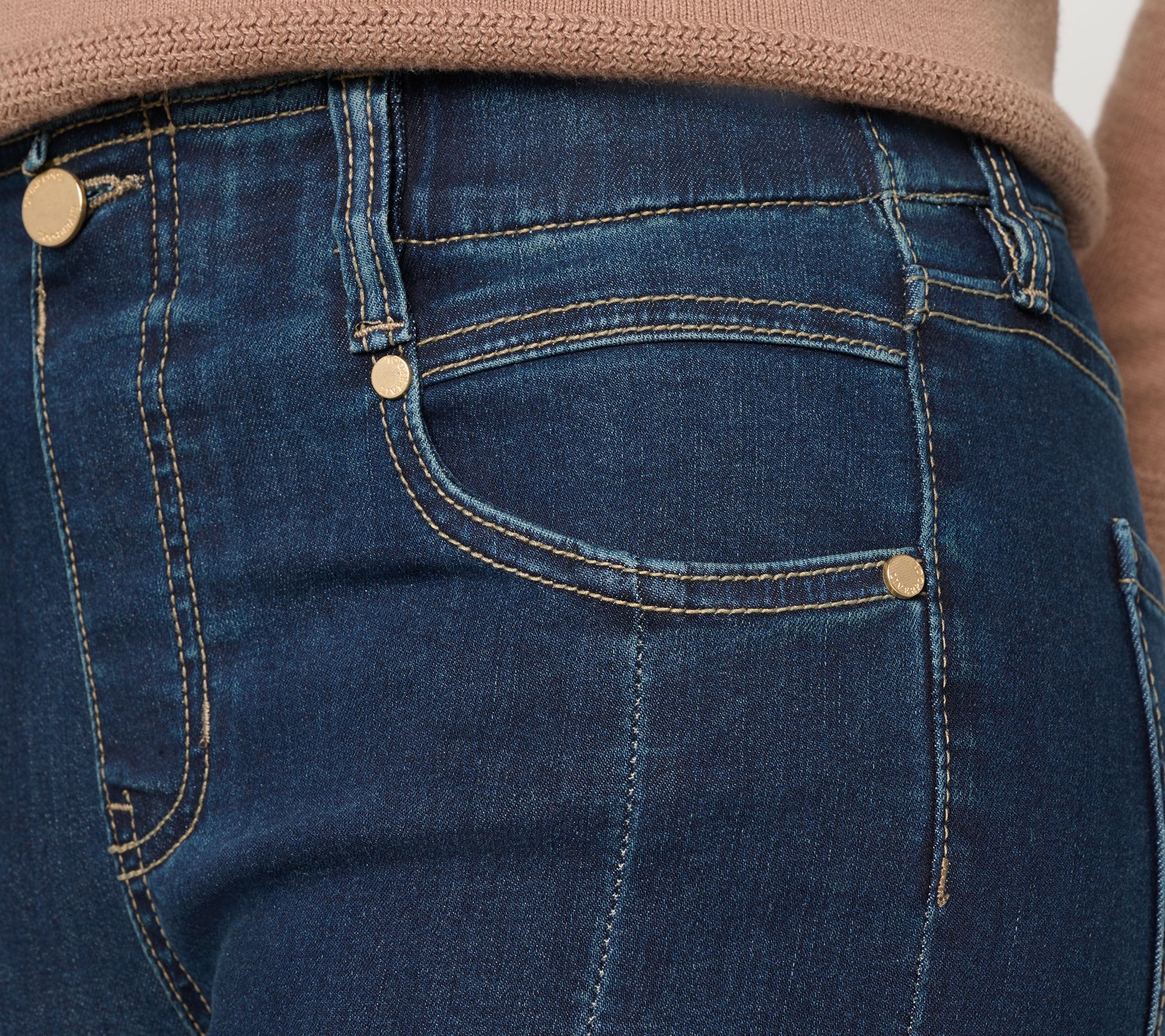 Classic cool. Styled with crisp seaming and a balanced boot-cut shape, this take on Liverpool's Gia Glider jeans creates a sleek look whether you're dashing into work or catching up with friends on the weekend. The smooth stretch, five-pocket design, and elastic waistband give a comfortable fit that flatters and moves with you -- just add sneakers or heels for an instant outfit. From Liverpool Los Angeles.