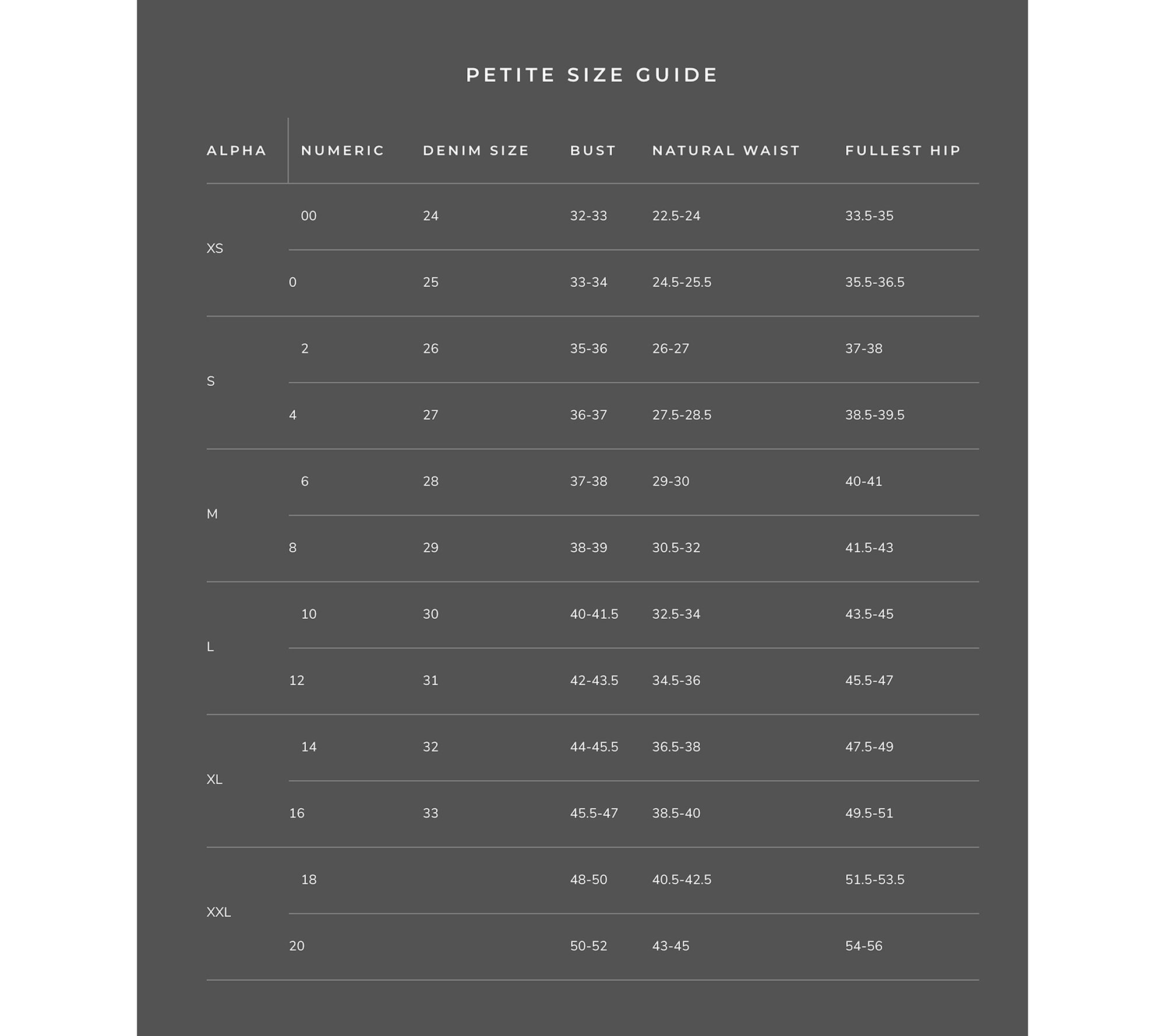 • Leg Shape: slim leg; fits close to the body through the entire leg