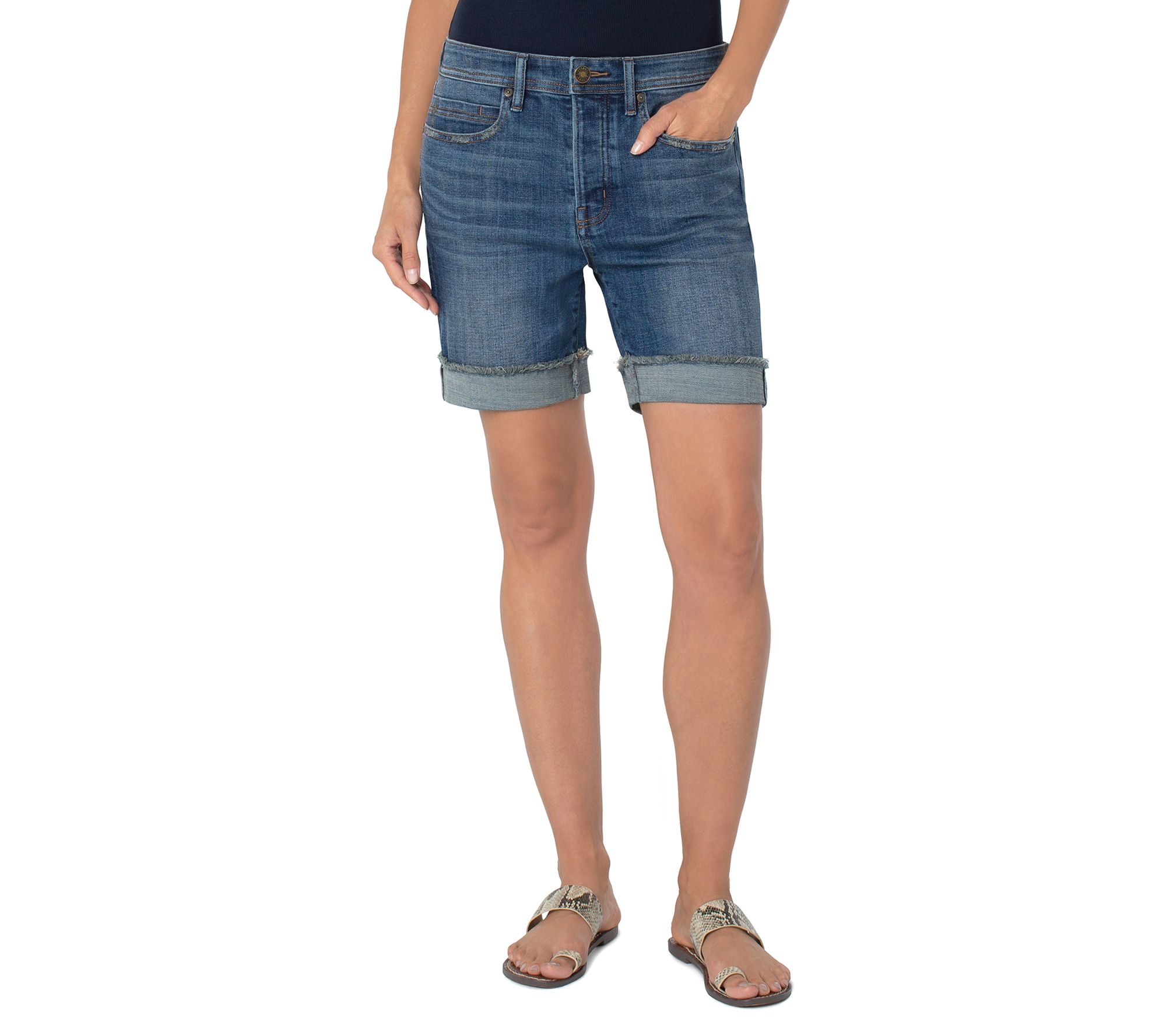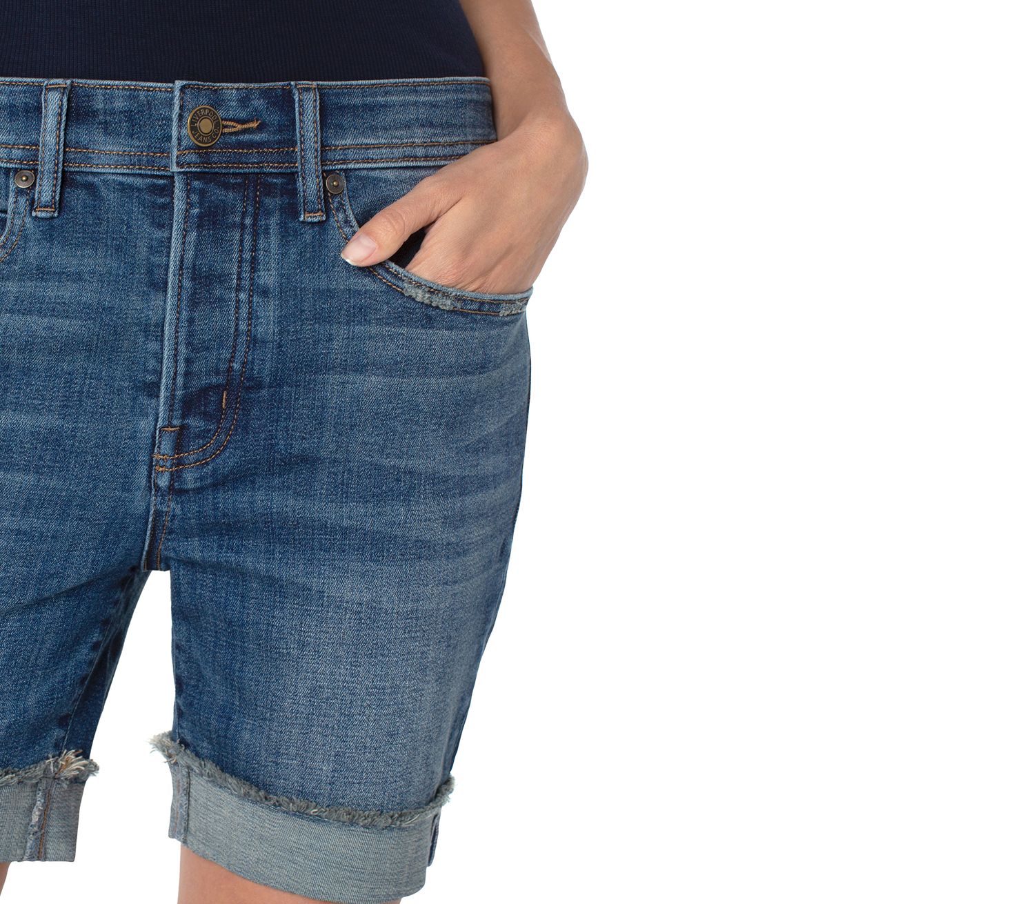 Rock a playful casual look in these throwback shorts made in cotton-blend denim and sporting a rolled hem. From Liverpool Los Angeles.