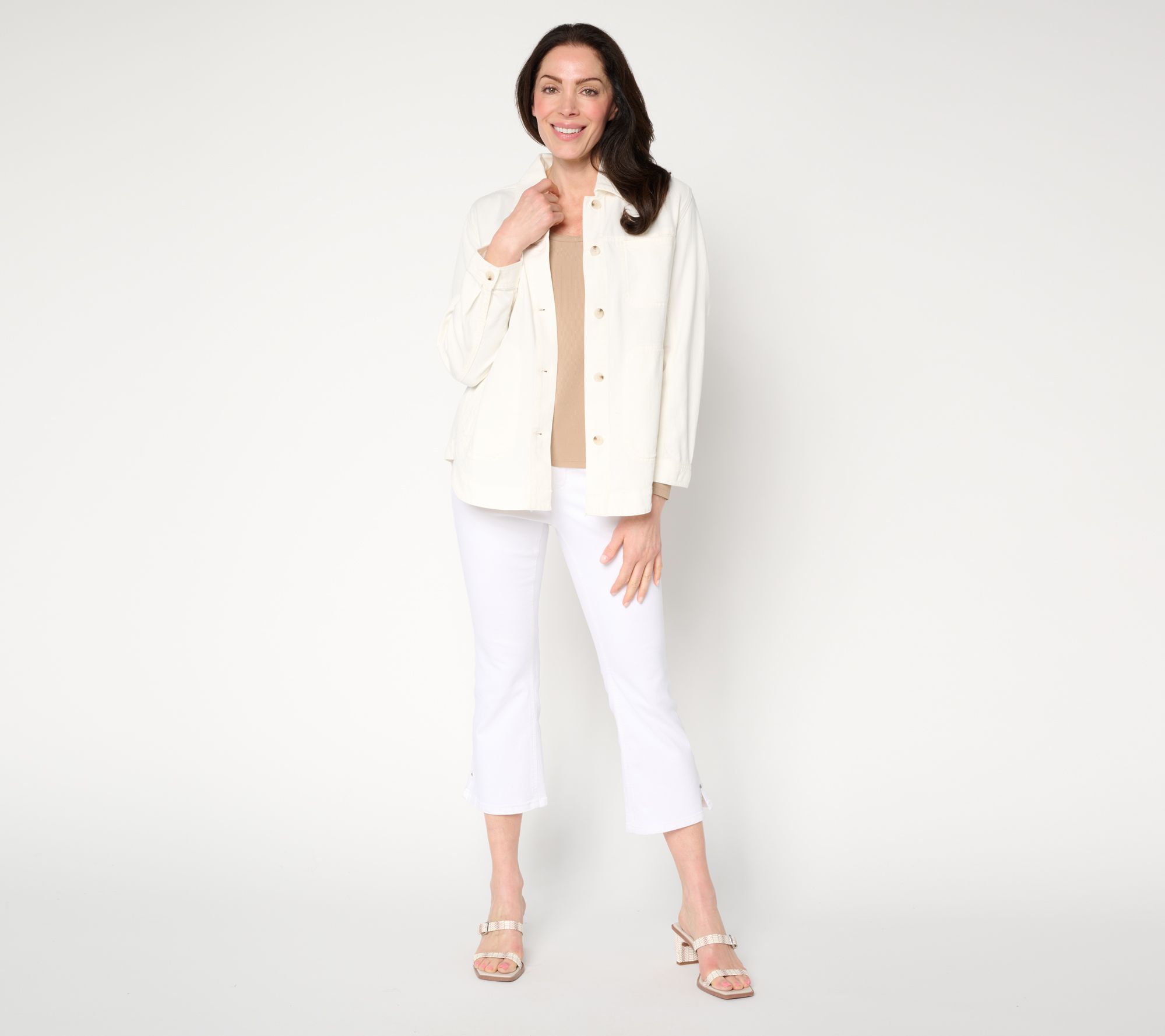 For those brisk mornings that blur into warm afternoons -- from your favorite coffee spot to a stroll in the park -- this weekender shirt jacket adds laid-back comfort and style to your look. Classic details like a point collar, button-front closure, and practical chest and front pockets offer endless outfit possibilities, buttoned or layered over a tee. From Liverpool Los Angeles.