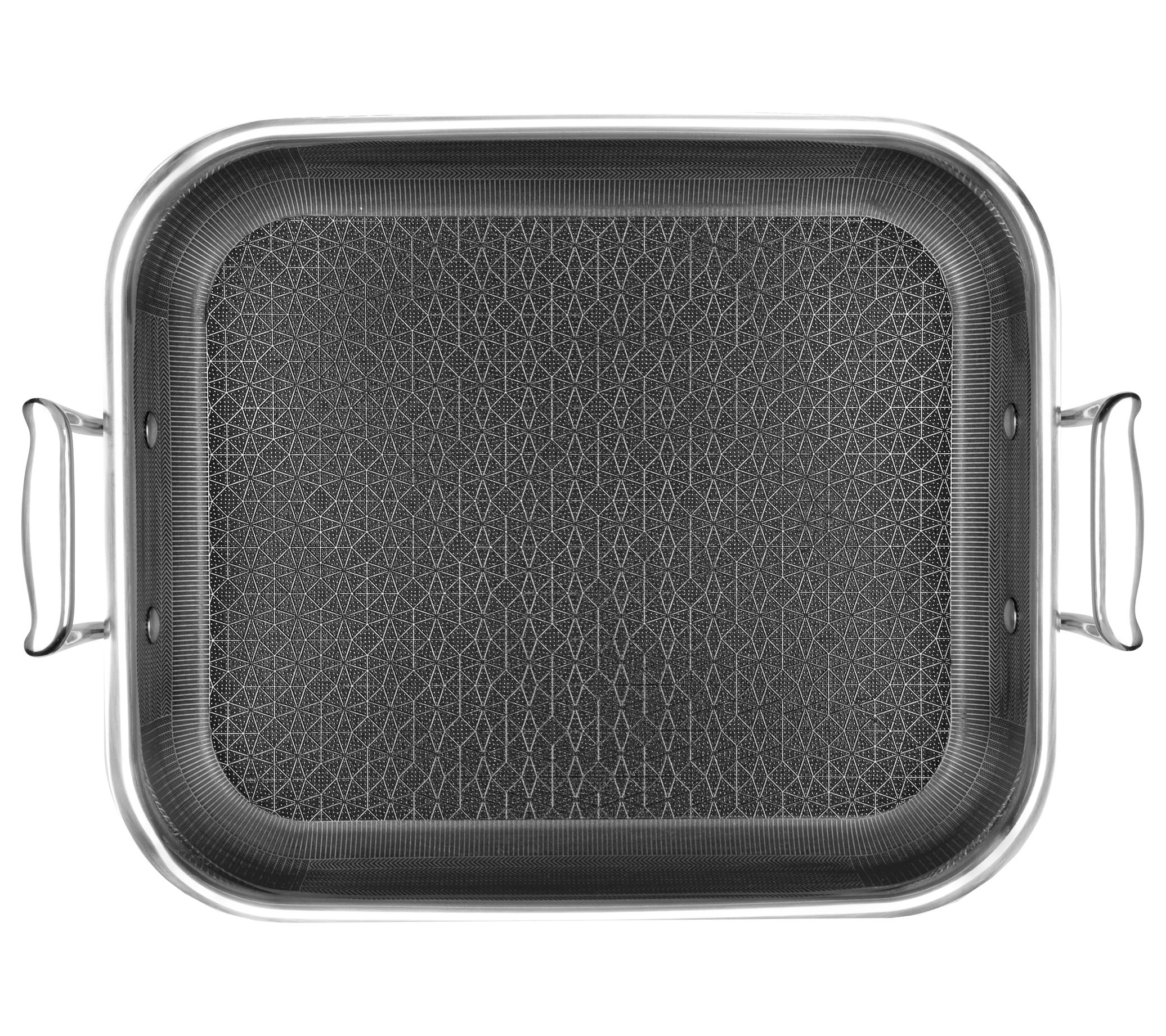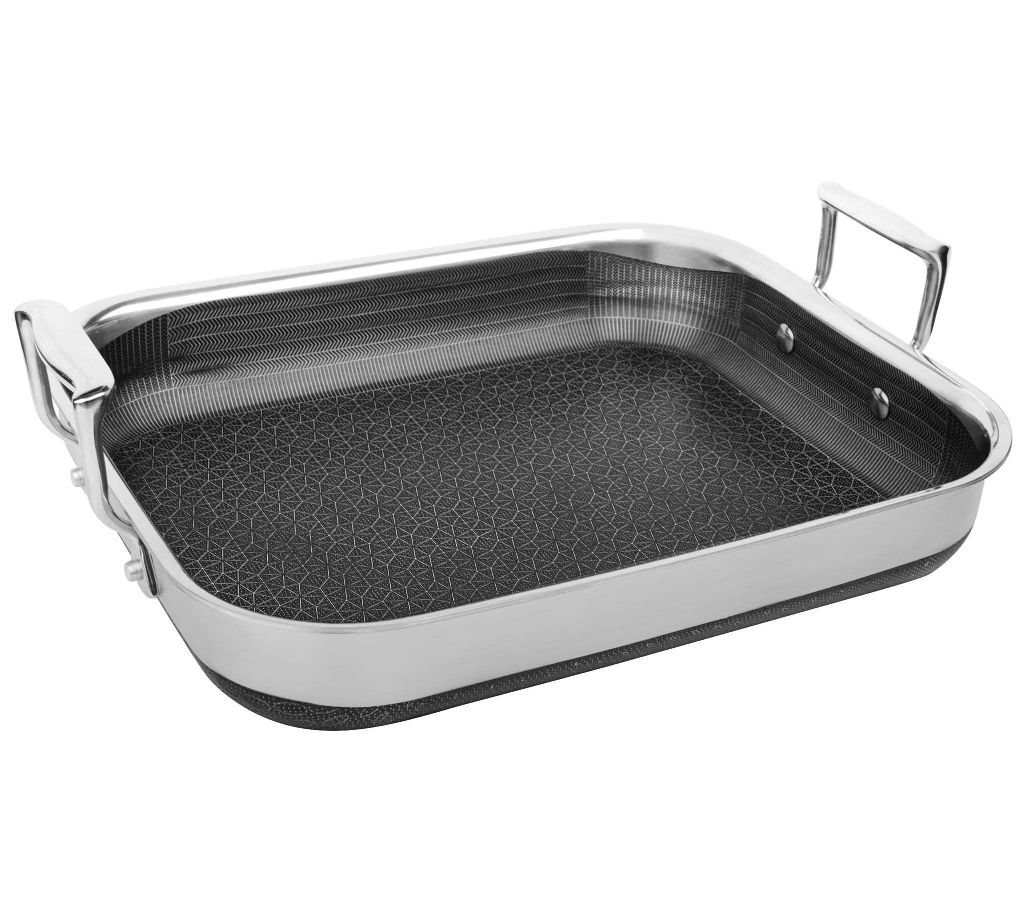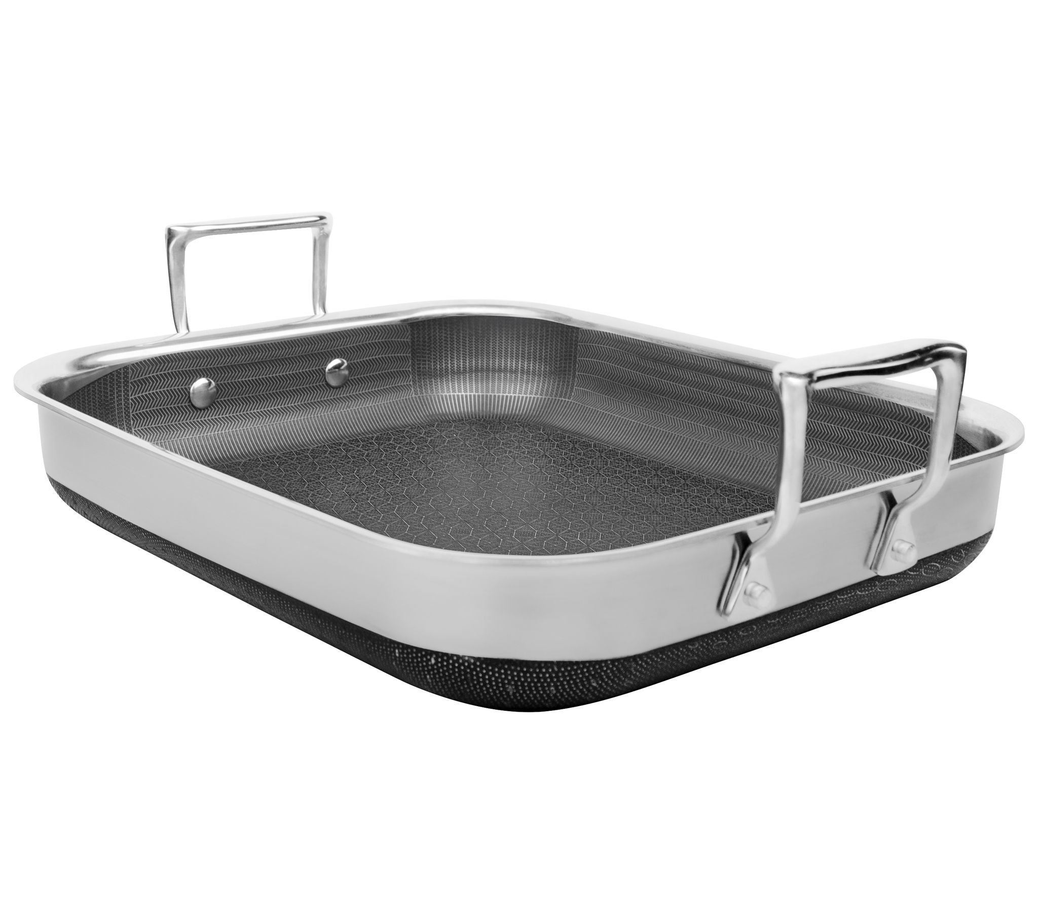 Elevate your cooking experience with the Livwell DiamondClad Hybrid Nonstick Roasting Pan with Rack. Combining the performance of cast iron with the convenience of nonstick, this professional-grade pan ensures even heat distribution and faster cooking thanks to its Thermowave technology. Compatible with all cooktops, including induction, and oven-safe up to 500F, it's perfect for any kitchen. From Livwell.