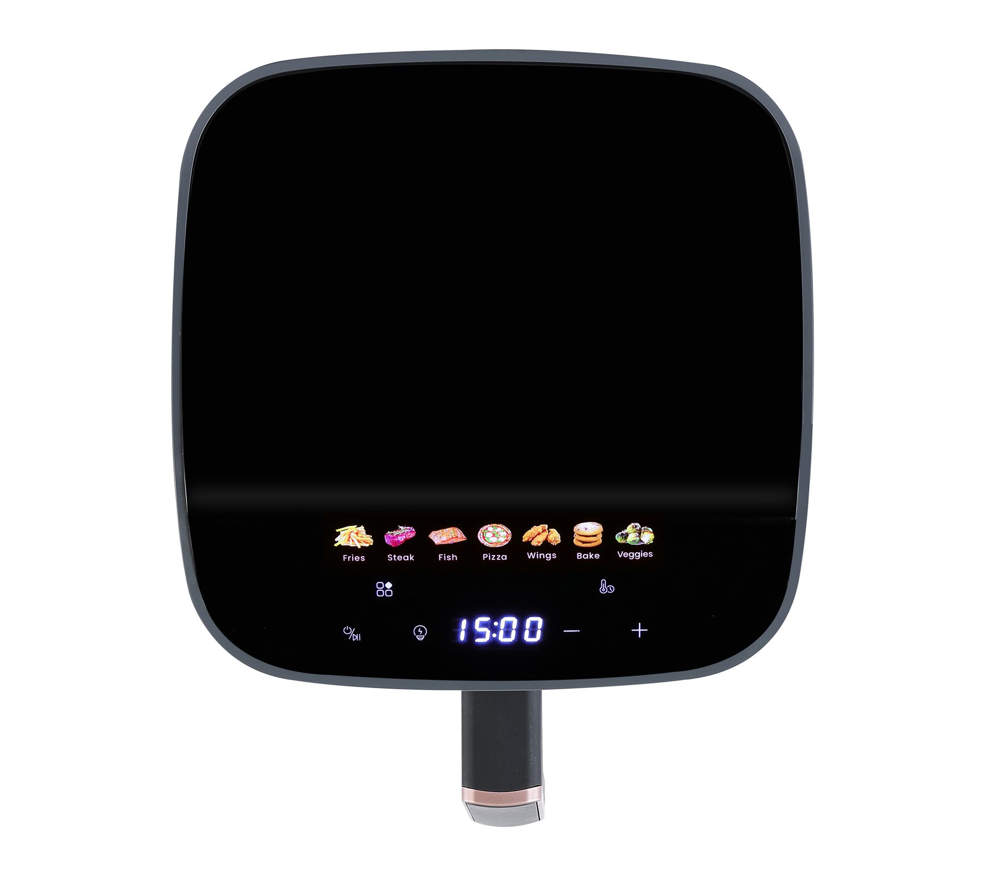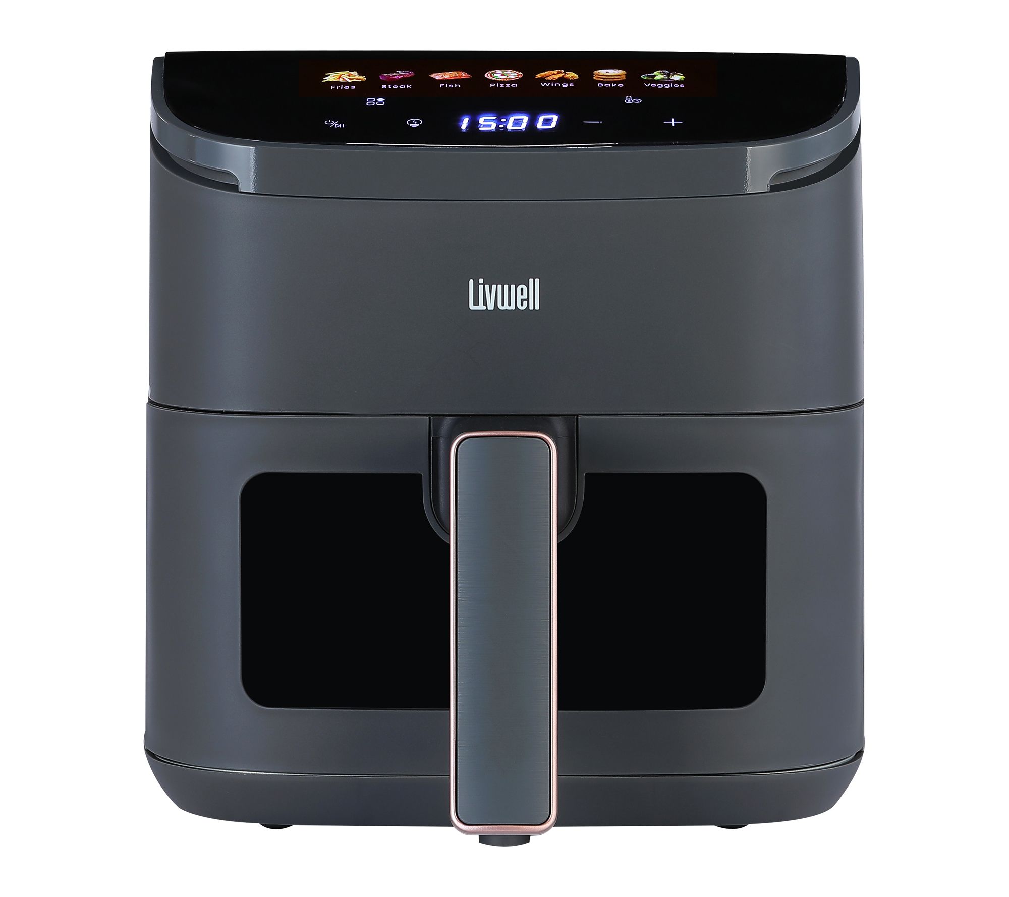Whether it's crispy fries for family movie night or quick weeknight veggies with a golden crunch, this 5-quart air fryer makes healthy favorites easy with intuitive icon-based presets and precise temperature control. The modern color LED display, chic matte grey finish, and rose goldtone accents blend everyday elegance with reliable performance for delicious results in minutes. From Livwell.