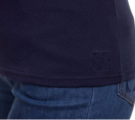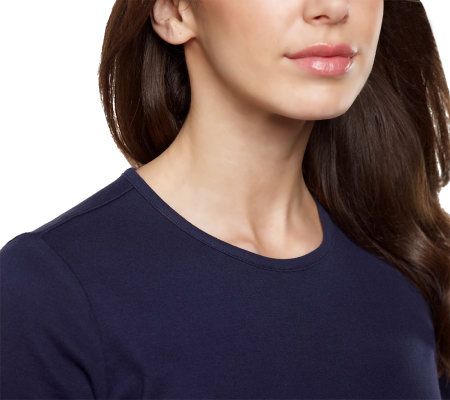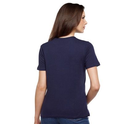Don't overlook the potential in this classic short-sleeved tee. Pair it with your favorite jeans and a long scarf for a look that's city chic. Or, wear it with crisp, white pants and large sunglasses--embracing summer style with a hint of sophistication. No matter how you wear it, you're sure to feel casual, comfortable, and confident--and that's a beautiful thing. From Liz Claiborne New York.