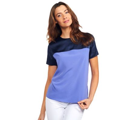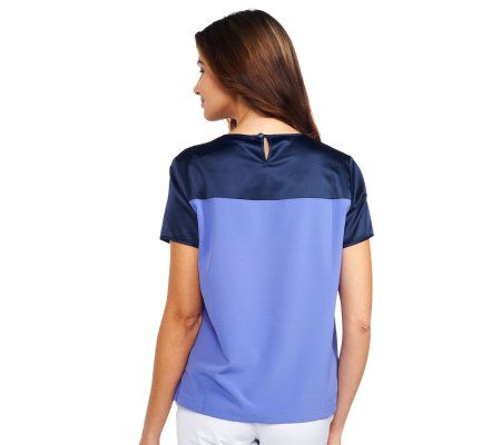 Liz Claiborne New York Short Sleeve Color-block Blouse