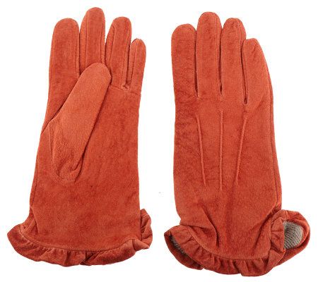 Ruffles at the edge give these classic suede gloves a playful vibe without taking away from their sophistication. And a small slit at the wrist makes getting them on and off a cinch.